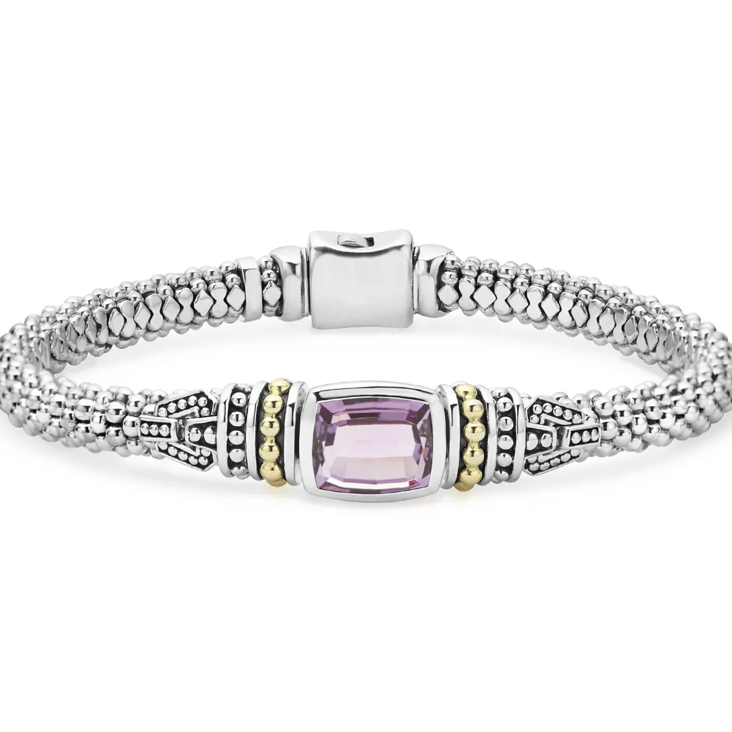 Amethyst Bezel-Set Gemstone And Sterling Silver Caviar Beading With 18K Gold Detailing Forms This Bracelet.
