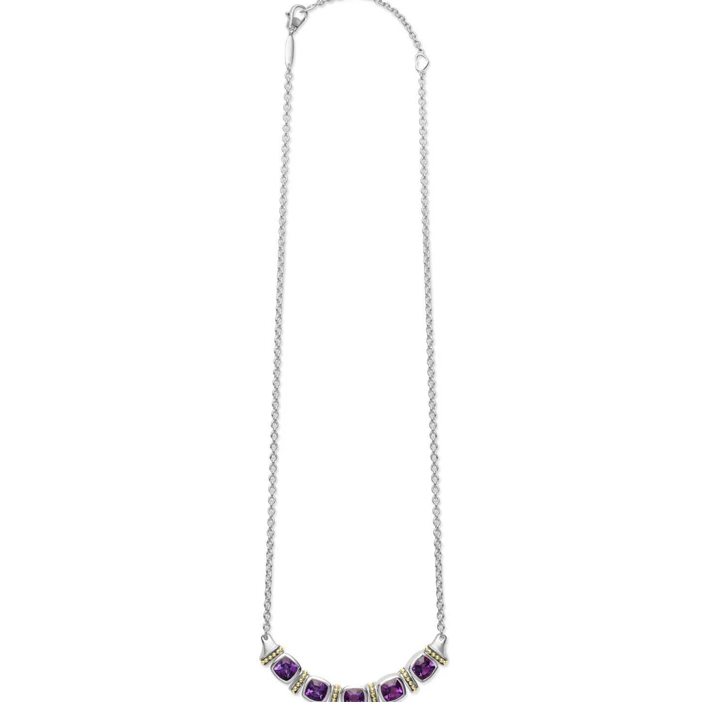 A Lagos Exclusive. Five Amethyst Gemstones Accent This Necklace Surrounded By Sterling Silver And 18K Gold Caviar Beading.