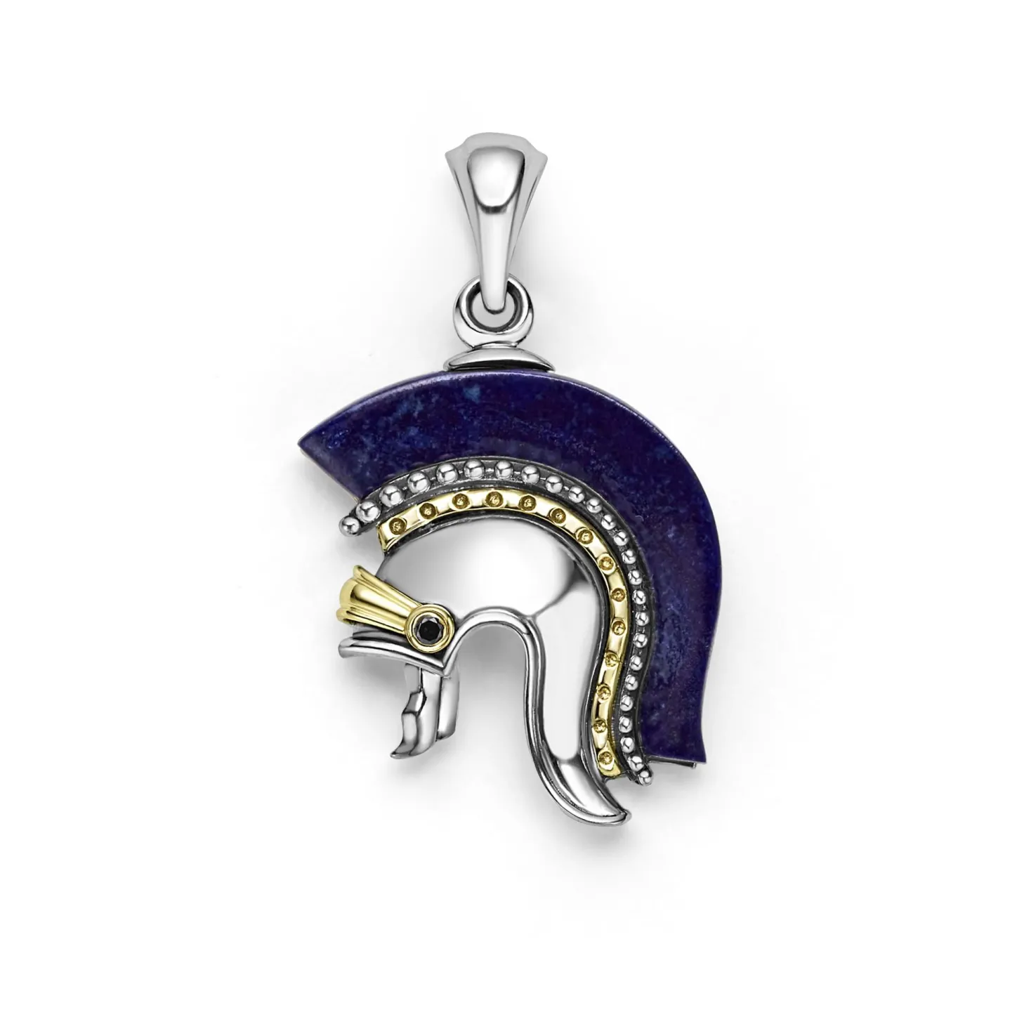 Lapis Gemstone, Sterling Silver And Smooth 18K Gold Form This Spartan Helmet Amulet.
