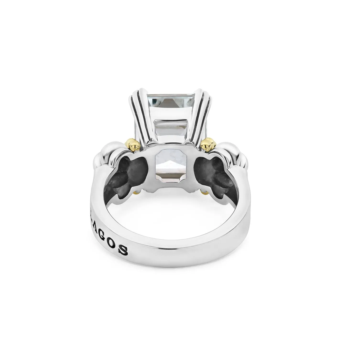 The Return Of A Lagos Icon. Our Signature Emerald-Cut White Topaz Gemstone Ring With A Prong Setting In Sterling Silver And 18K Gold Caviar Beading.