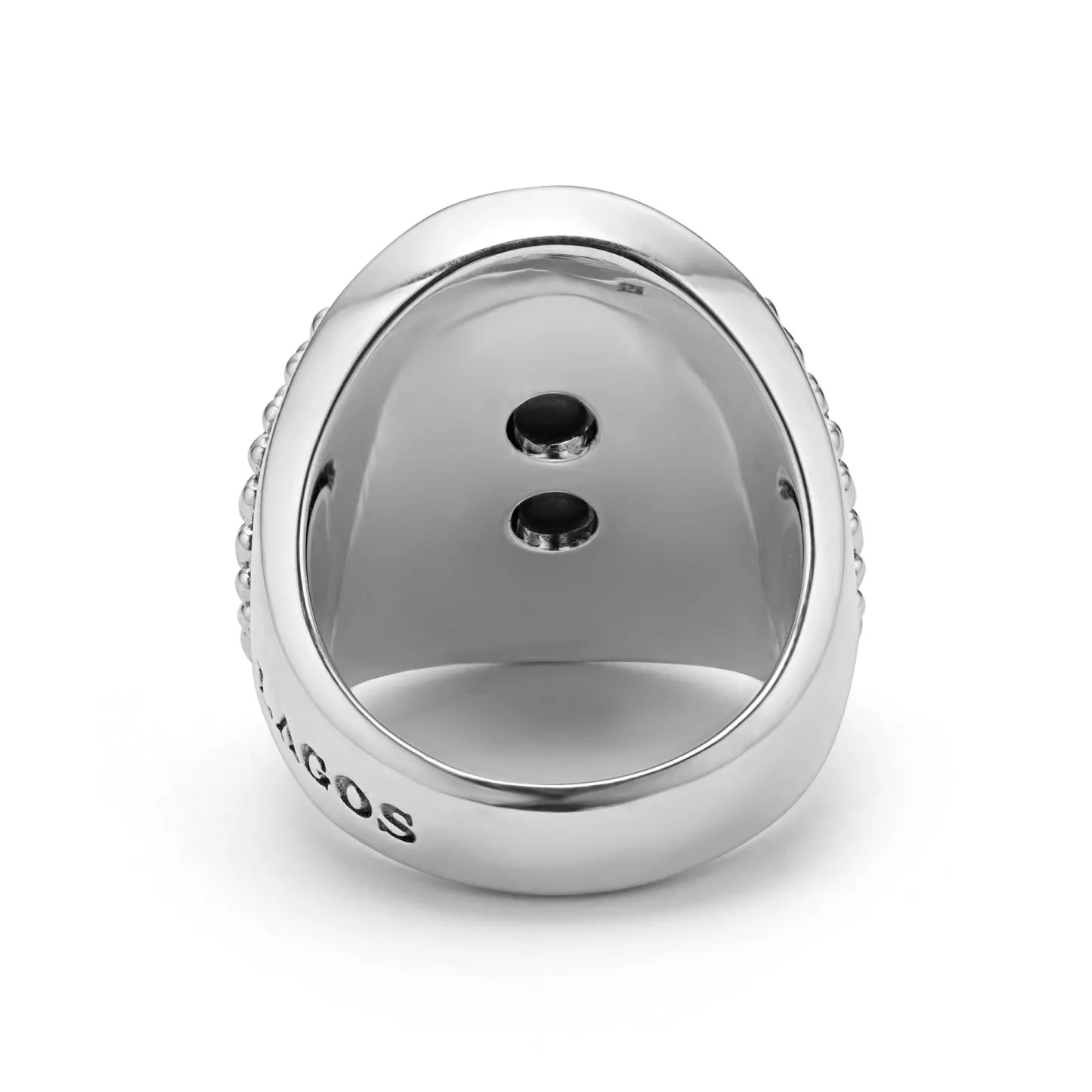 Black Agate Gemstone And Sterling Silver Caviar Beading Form This Oval Band Ring.