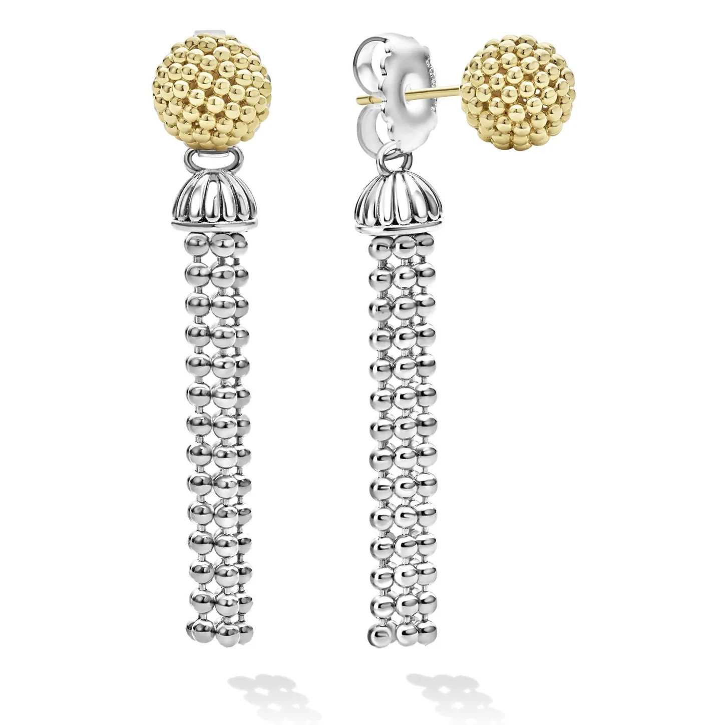 A Lagos Exclusive. Sterling Silver And Caviar Beading Form These Dramatic Drop Earring Backs.