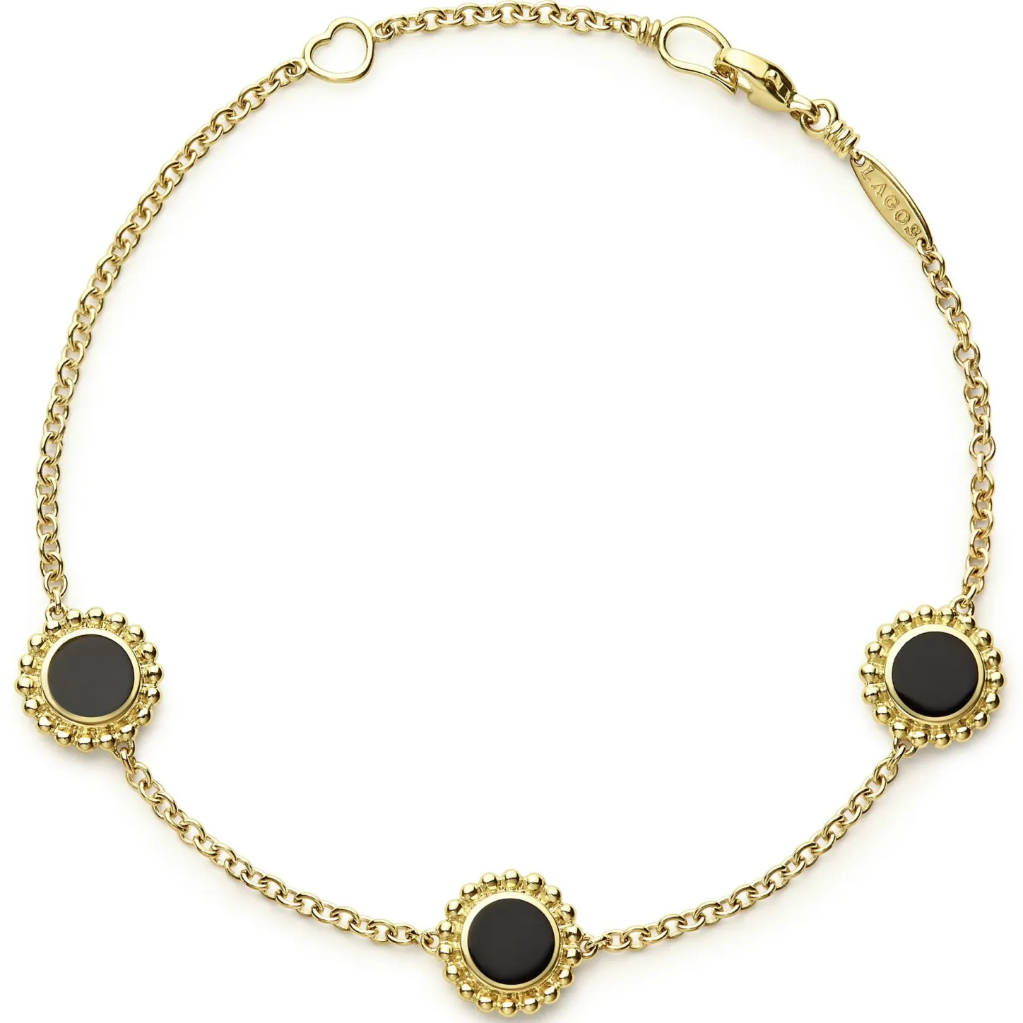 An 18K Gold Bracelet Including Three Onyx Inlay Stations With Caviar Beaded Details.