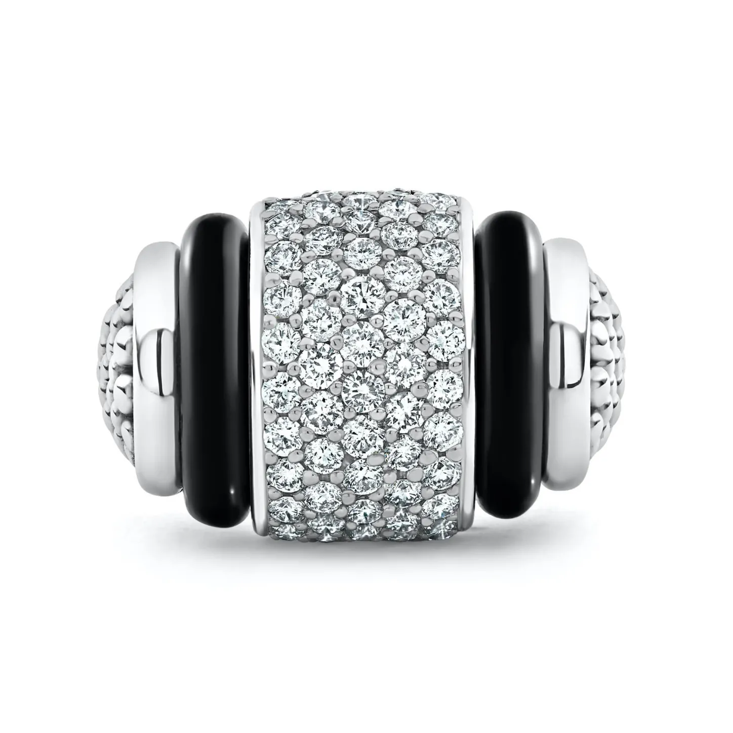 Diamonds Set In Sterling Silver Are Accented By Sleek Black Ceramic And Caviar Beading On This Statement Ring. Lagos Diamonds Are The Highest Quality Natural Stones.