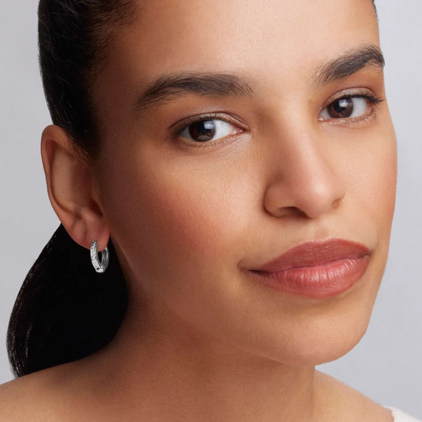 Diamonds Set In A Smooth Sterling Silver Circle Motif Form This Timeless Huggie Earring. Lagos Diamonds Are The Highest Quality Natural Stones.