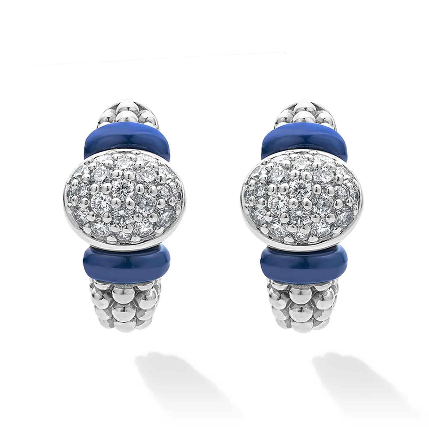 Diamonds Set In Ultramarine Ceramic Form These Oval Hoop Earrings With Classic Caviar Beading. Lagos Diamonds Are The Highest Quality Natural Stones.