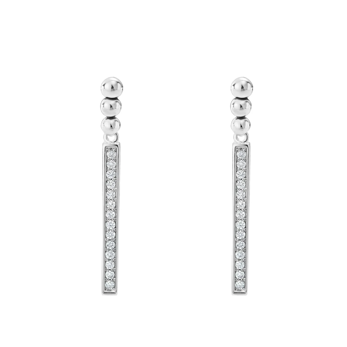 Linear Diamond Drop Earrings Set By Smoothly Polished Sterling Silver. Lagos Diamonds Are The Highest Quality Natural Stones.