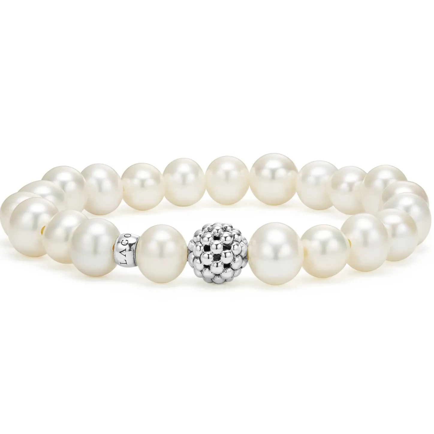 Pearl Bracelet With A Sterling Silver Caviar Beaded Station.