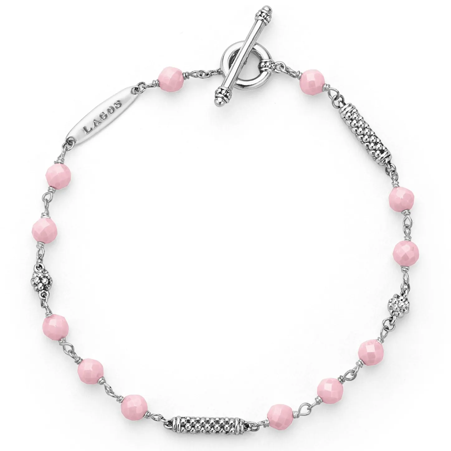 Pink Ceramic And Sterling Silver Caviar Beaded Bracelet Finished With Toggle Clasp.
