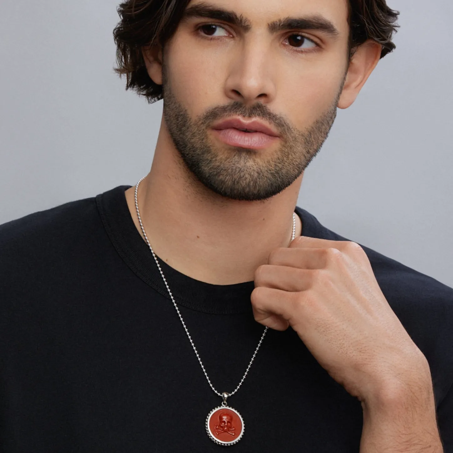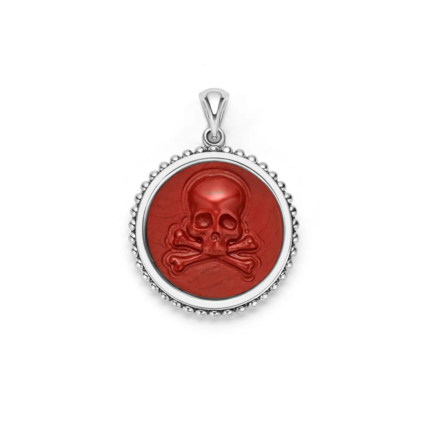 Red Jasper Gemstone Surrounded By Sterling Silver Caviar Beading Form This Crossbone Emblem Amulet.