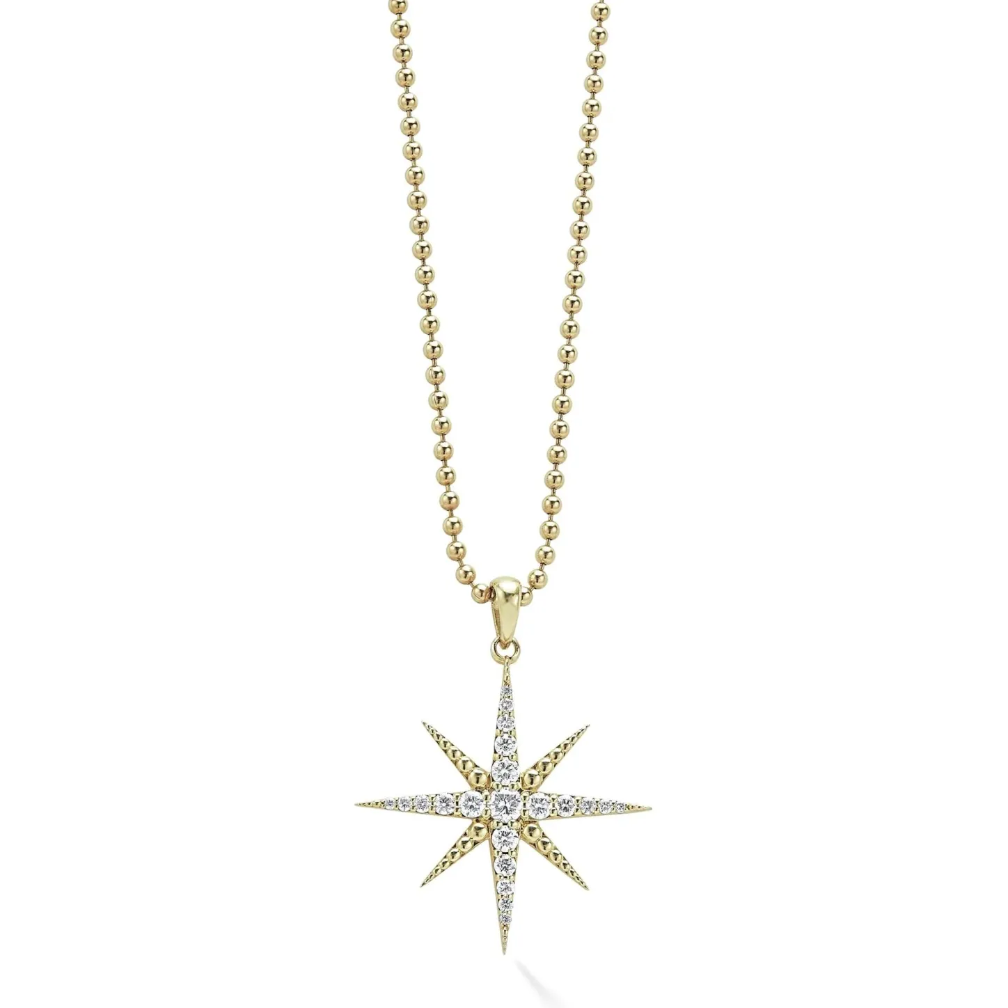 - One 18K Gold Caviar Beaded North Star Pendant Finished On An Adjustable 16 To 18 Inch Ball Chain Necklace.