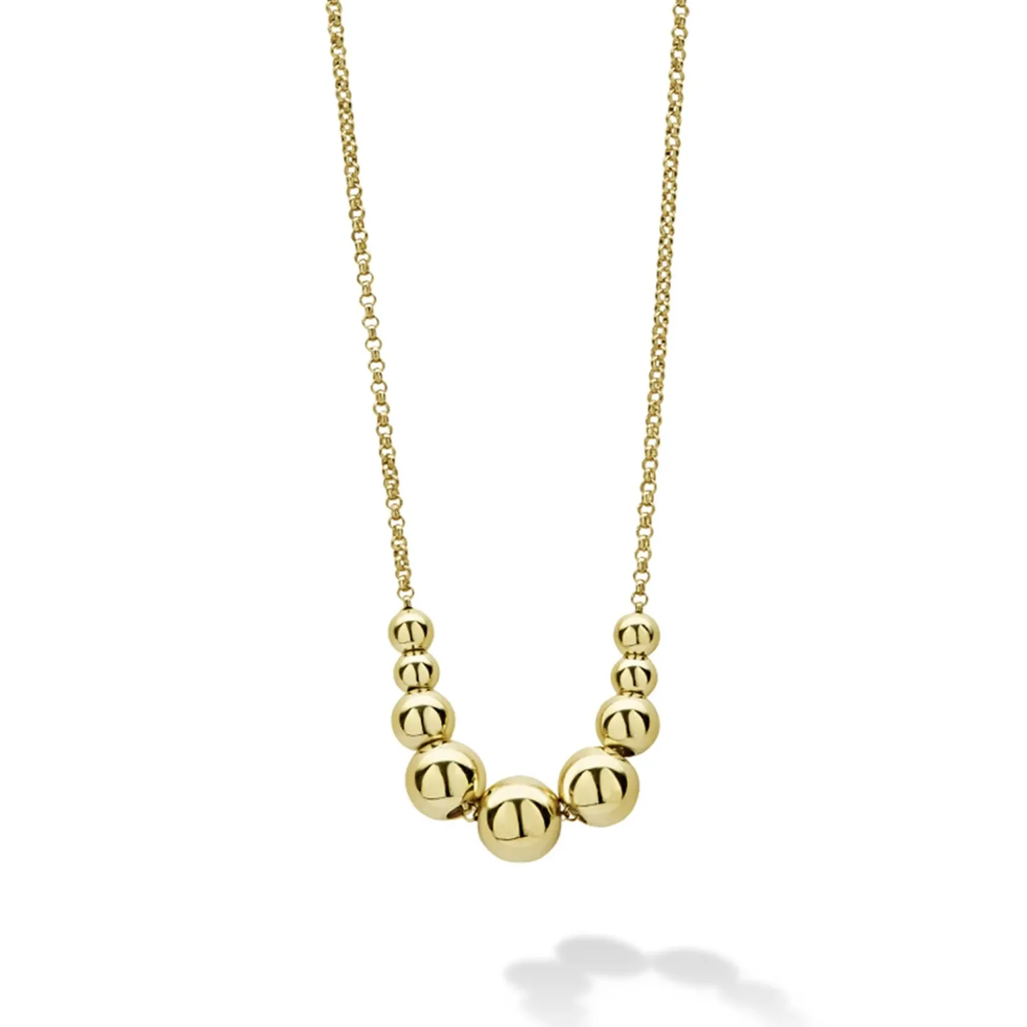 Nine 18K Gold Graduated Beaded Accents And An 18K Gold Chain Form This Necklace.