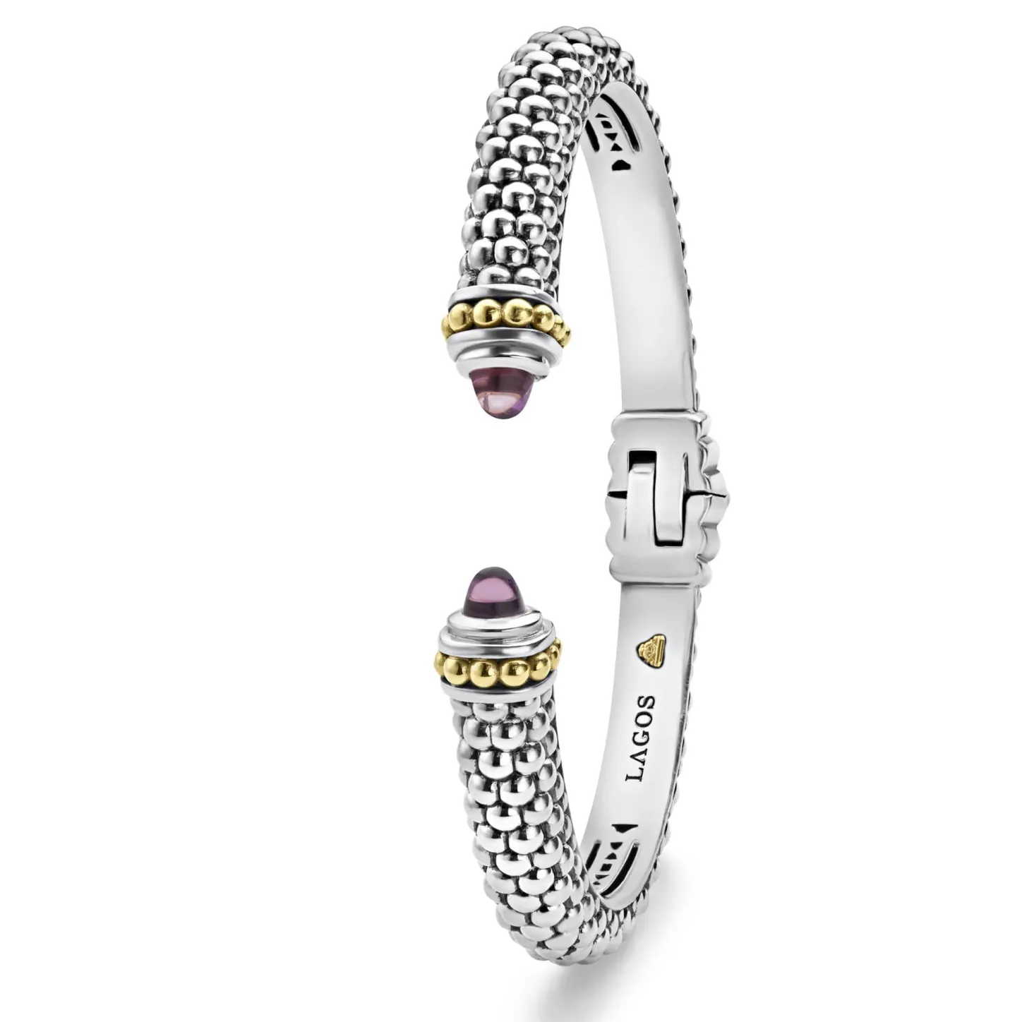Caviar Beading And Highly Polished Sterling Silver Stations Comprise This Innovative Cuff Bracelet Detailing Amethyst Gemstone End Caps.
