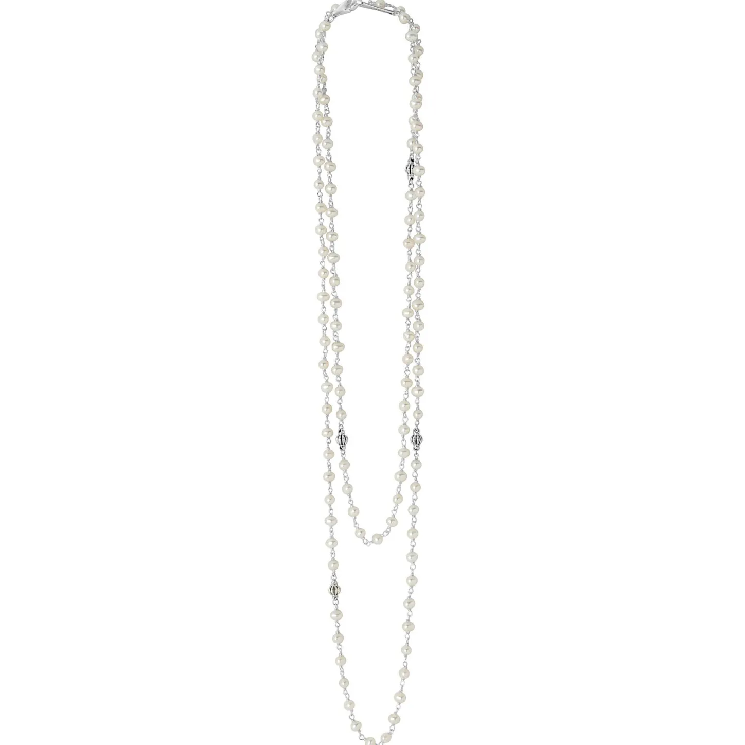 A Versatile Cultured Freshwater Pearl Strand Joined By Sterling Silver And Four Fluted Accent Stations.