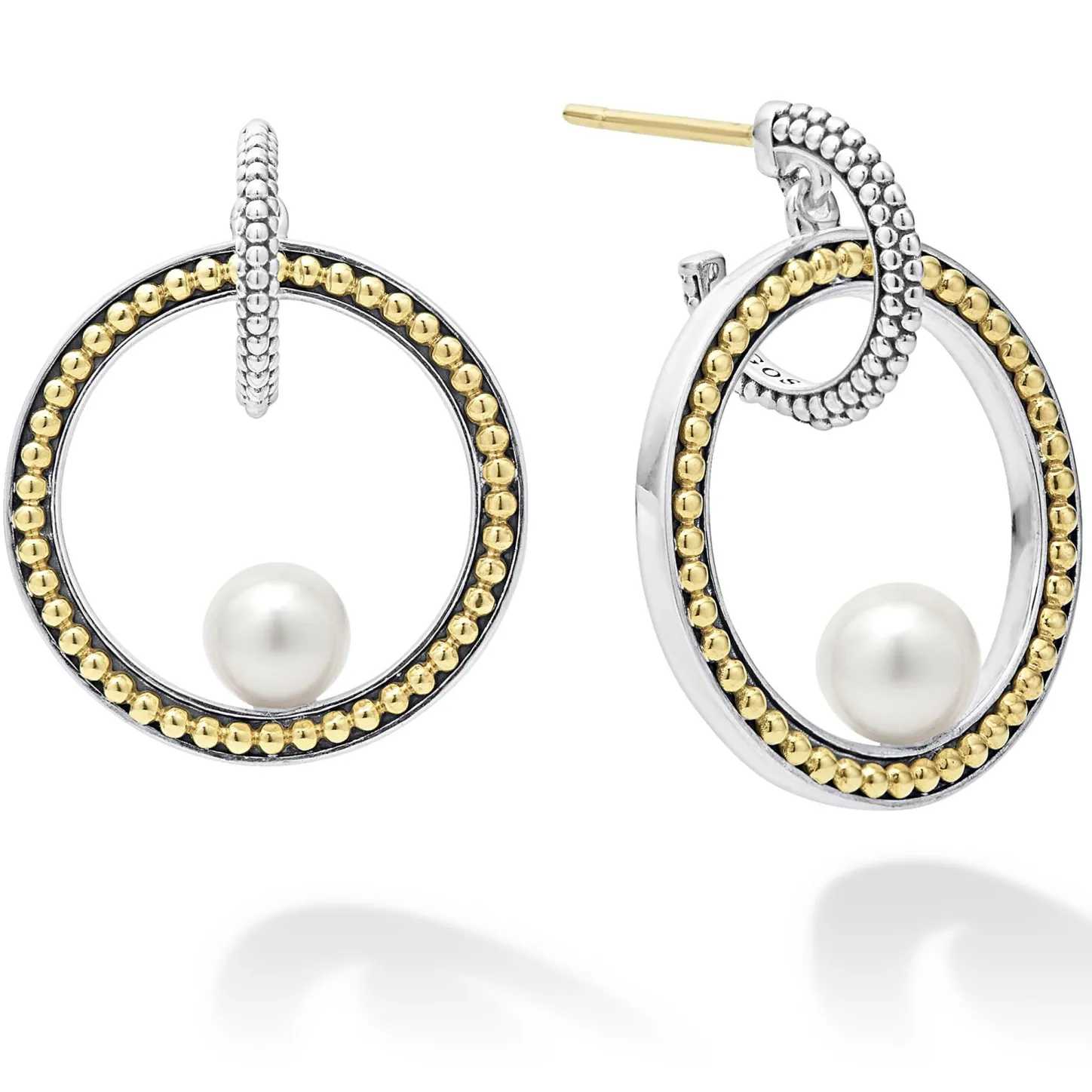 Cultured Freshwater Pearls Are The Highlight Of These Hoop Drop Earrings With Fine Caviar Beading In 18K Gold And Sterling Silver.