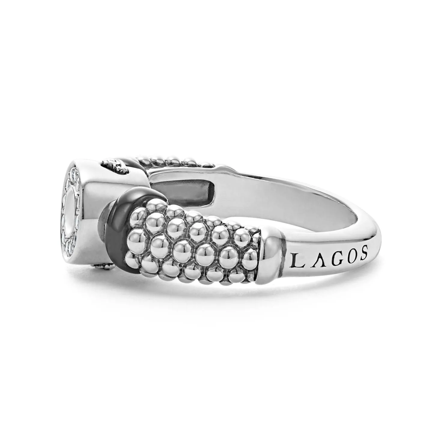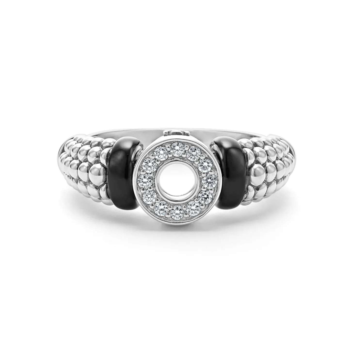 Smooth Black Ceramic & Diamonds In A Circle Motif With Caviar Beading Form This Timeless Ring. Lagos Diamonds Are The Highest Quality Natural Stones.
