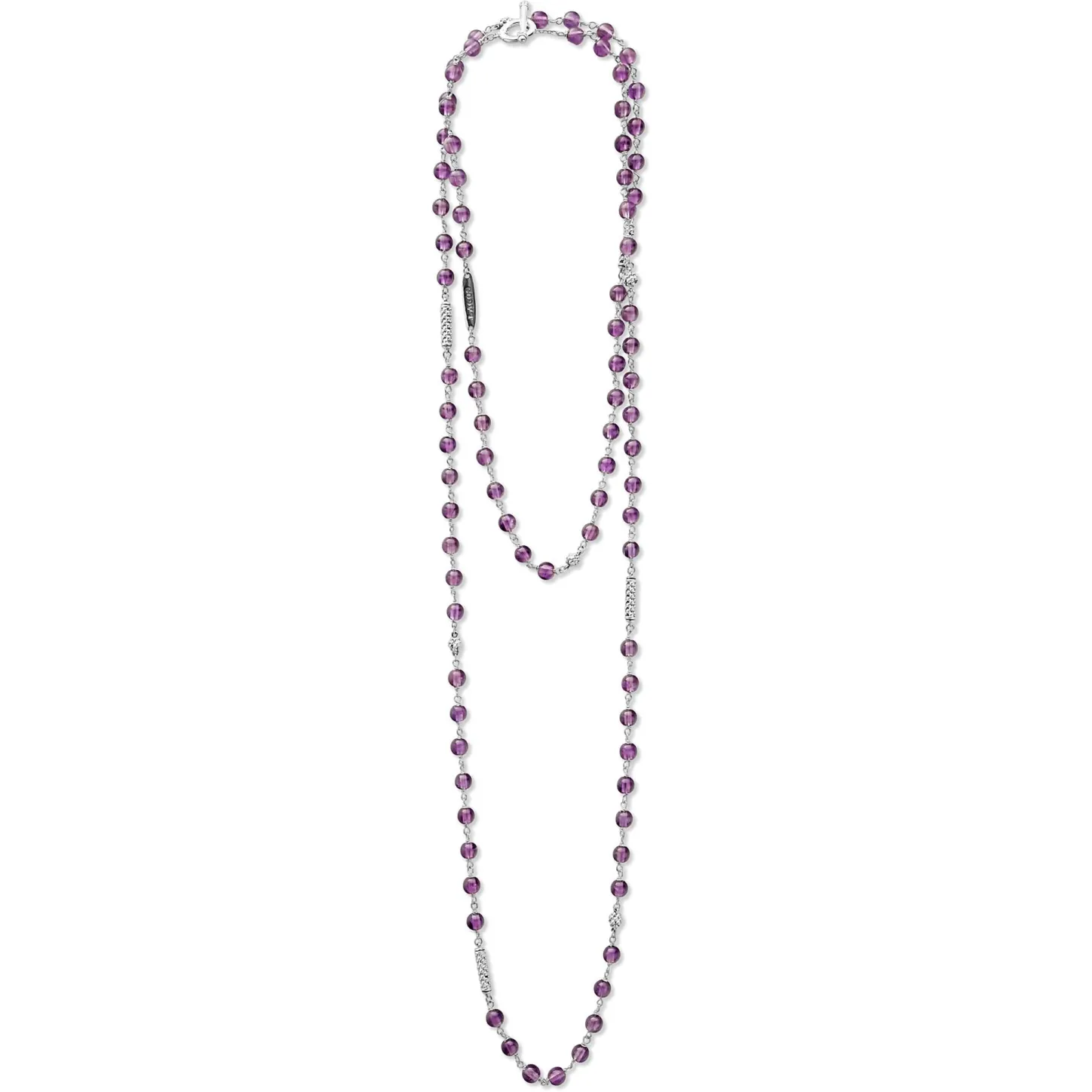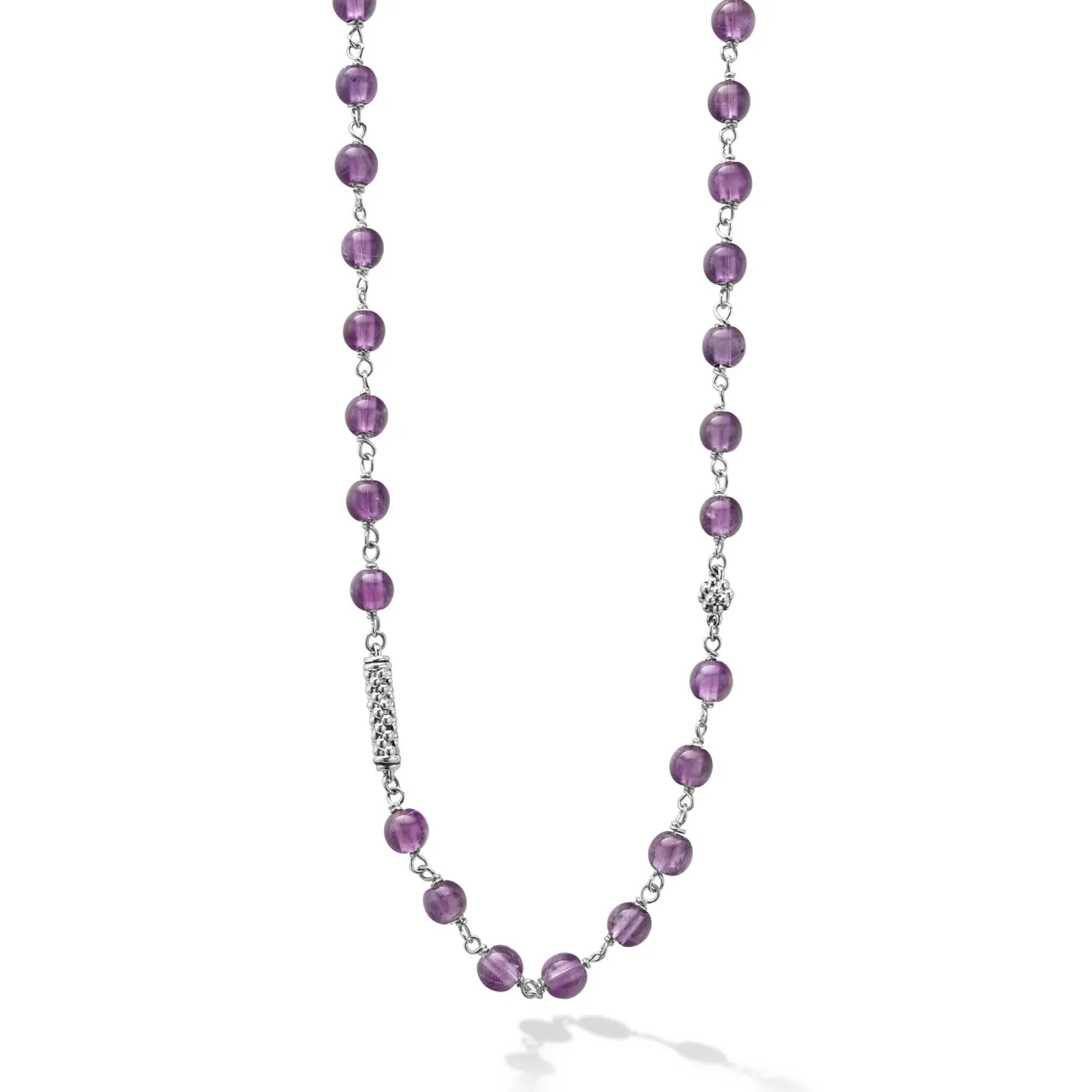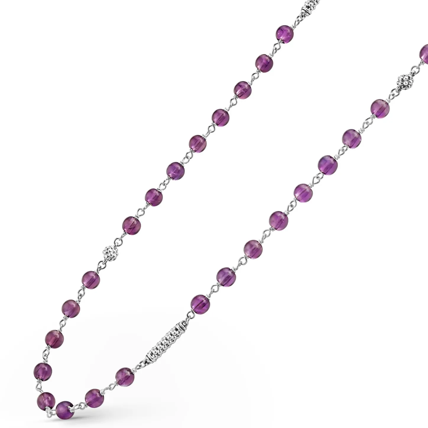 Amethyst And Sterling Silver Caviar Beaded Necklace Finished With Signature Lobster Clasp.