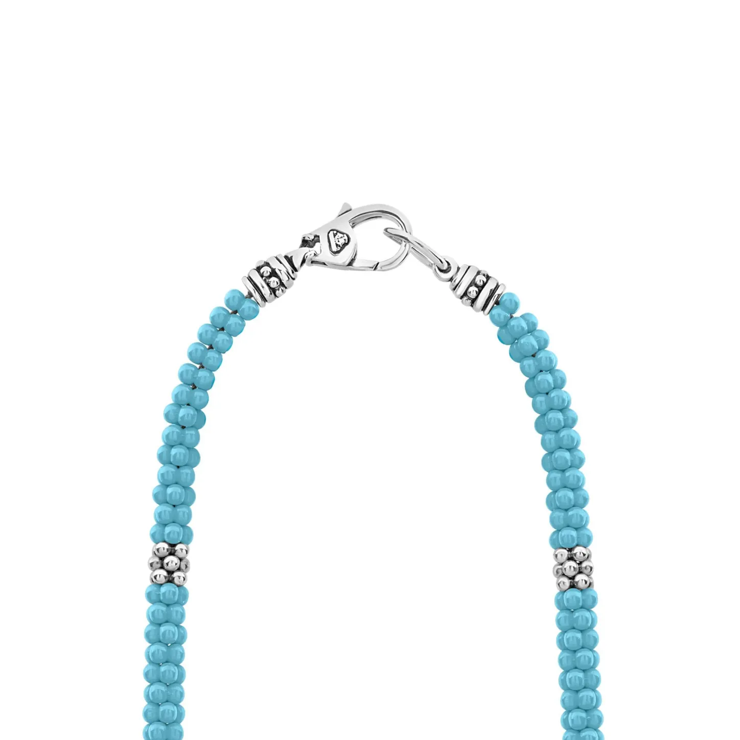 A Blue Ceramic And Sterling Silver Caviar Beaded Necklace.