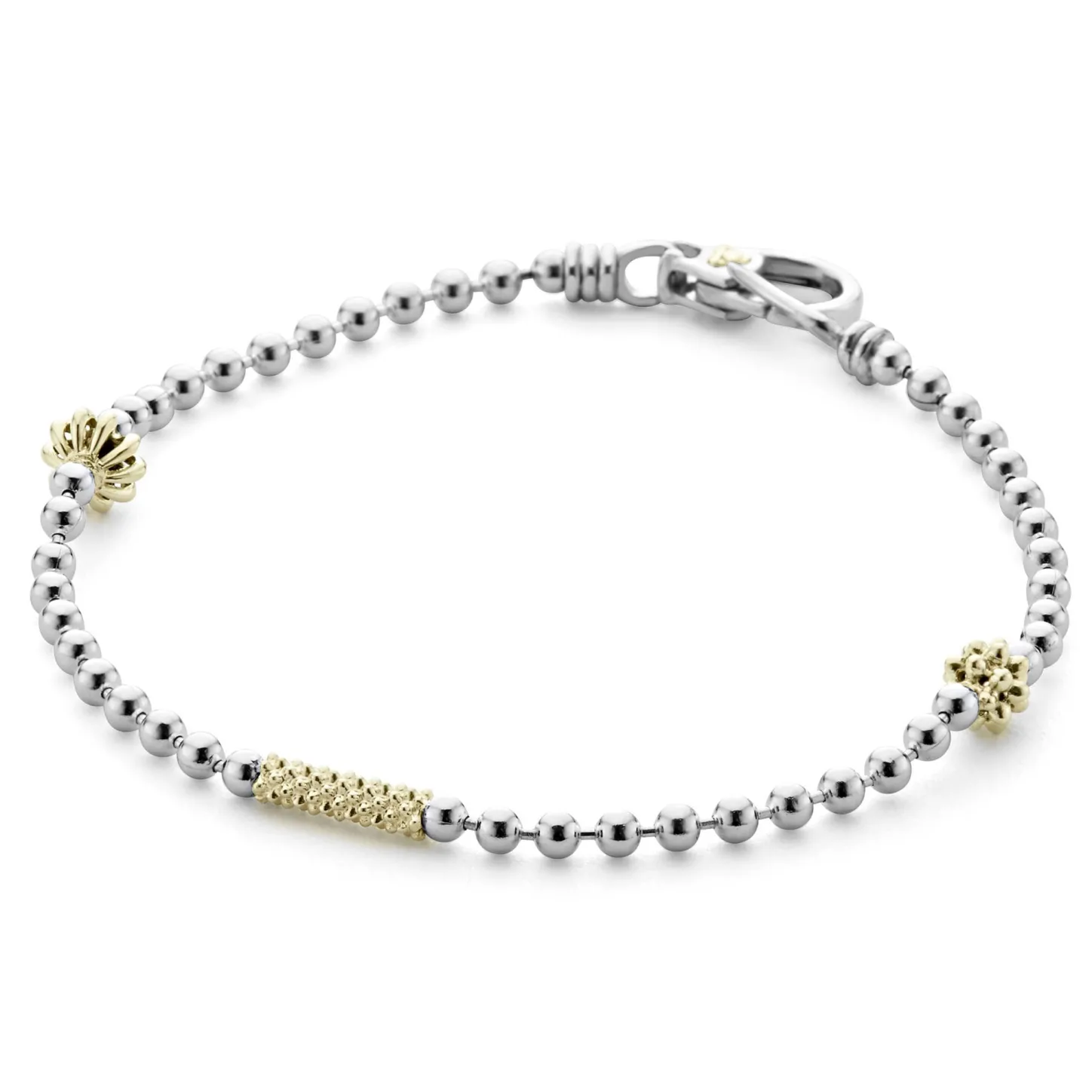 A Sterling Silver Bracelet With 18K Gold Caviar Beading And Fluted Accents.