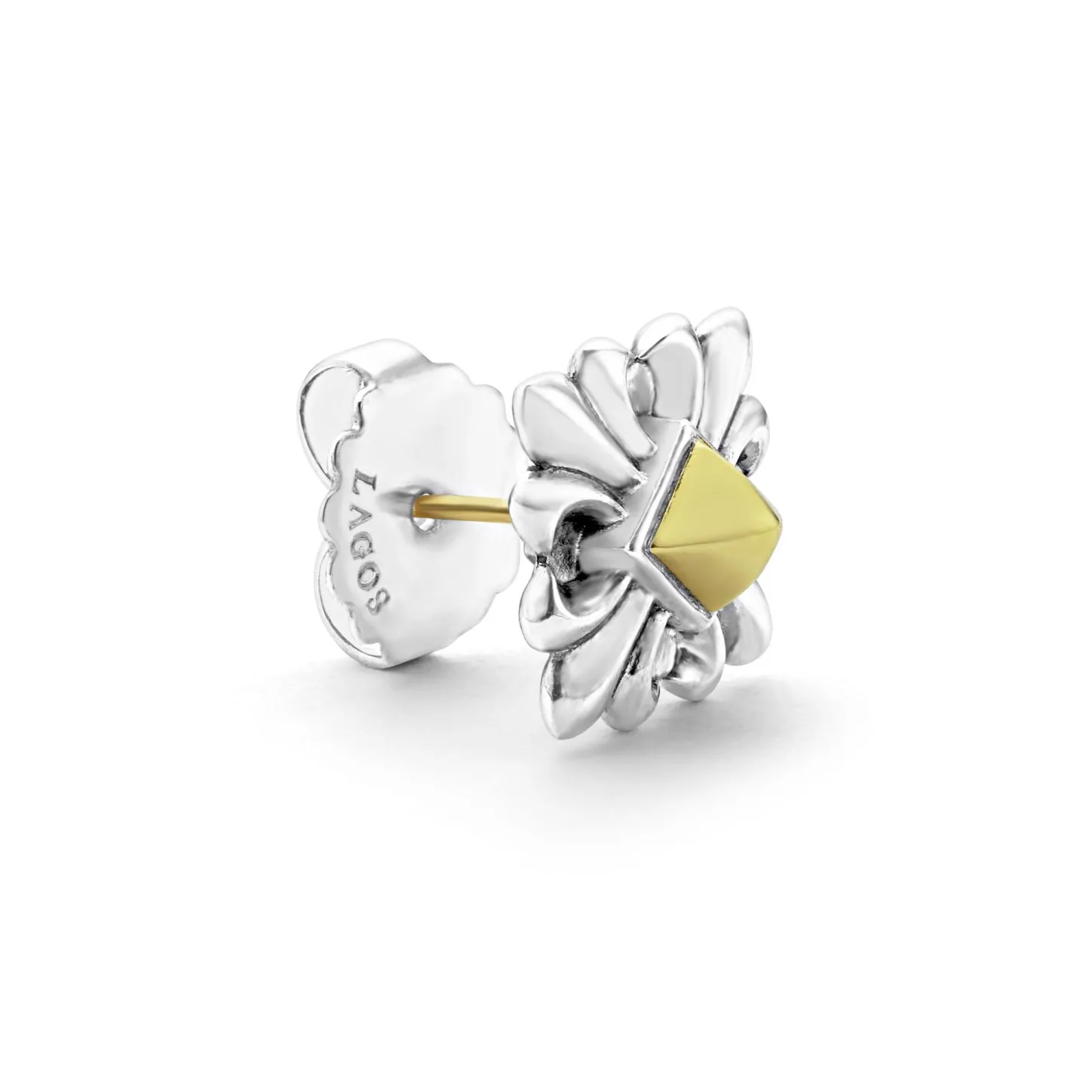 18K Gold And Sterling Silver Form This Medieval Cross Stud Earring.