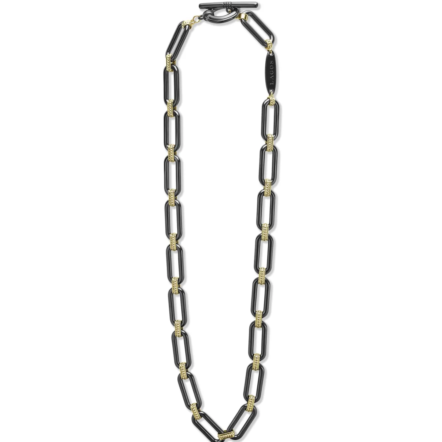 Black Ceramic And 18K Gold Variations Of Caviar Beading & Fluting Elements Form This Bold Link Necklace.
