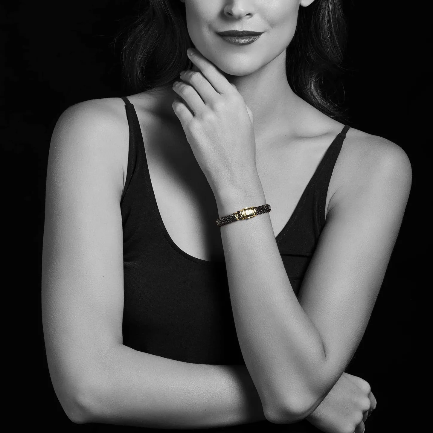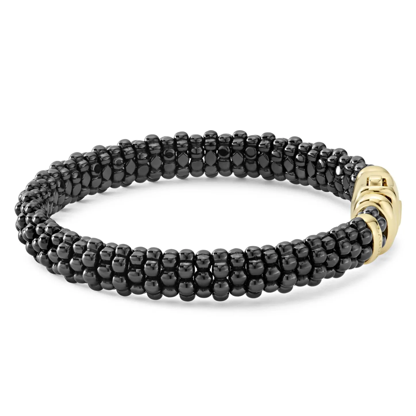 Classic Black Ceramic Caviar Beading Forms This Signature Bracelet. Finished With A Classic 18K Gold Box Clasp.