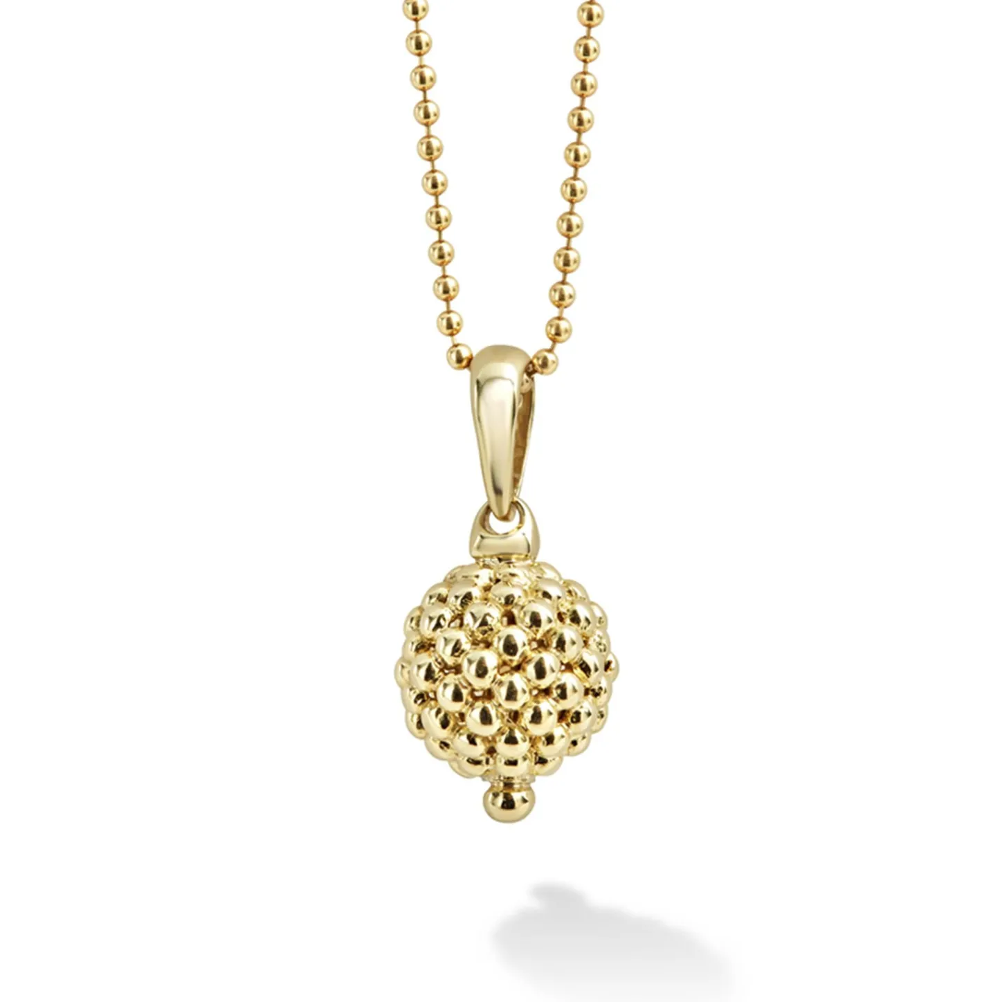 Signature Caviar Beading Surrounds This 18K Gold Pendant Paired With An 18K Gold Ball Chain Necklace.