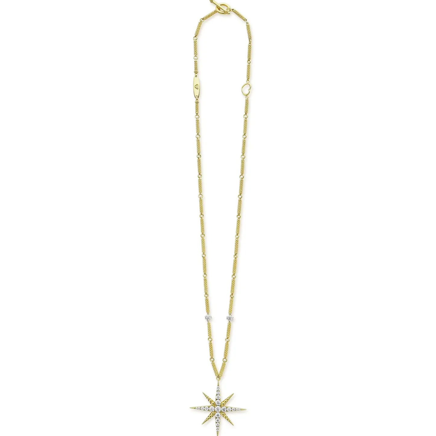 Diamonds And 18K Gold Superfine Caviar Beading In A Star Motif Form This Pendant Necklace. Lagos Diamonds Are The Highest Quality Natural Stones.