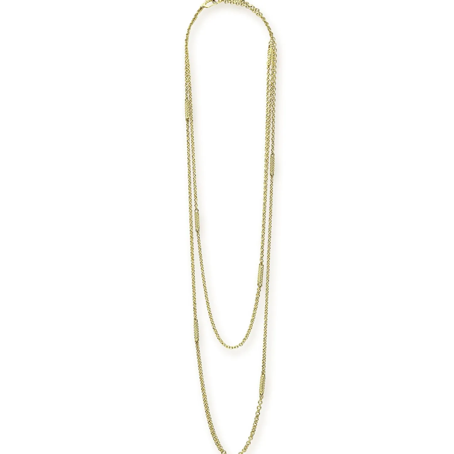 Seven 18K Gold Superfine Caviar Beaded Stations Accent This 32 Inch Chain Necklace.