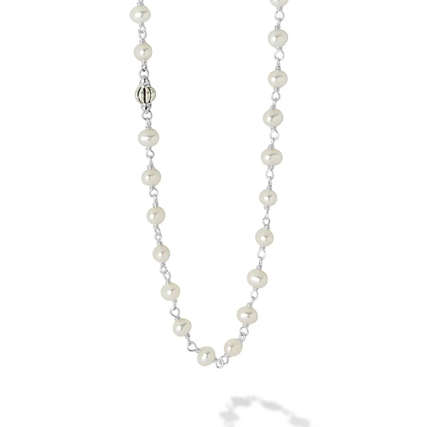 A Versatile Cultured Freshwater Pearl Strand Joined By Sterling Silver And Four Fluted Accent Stations.