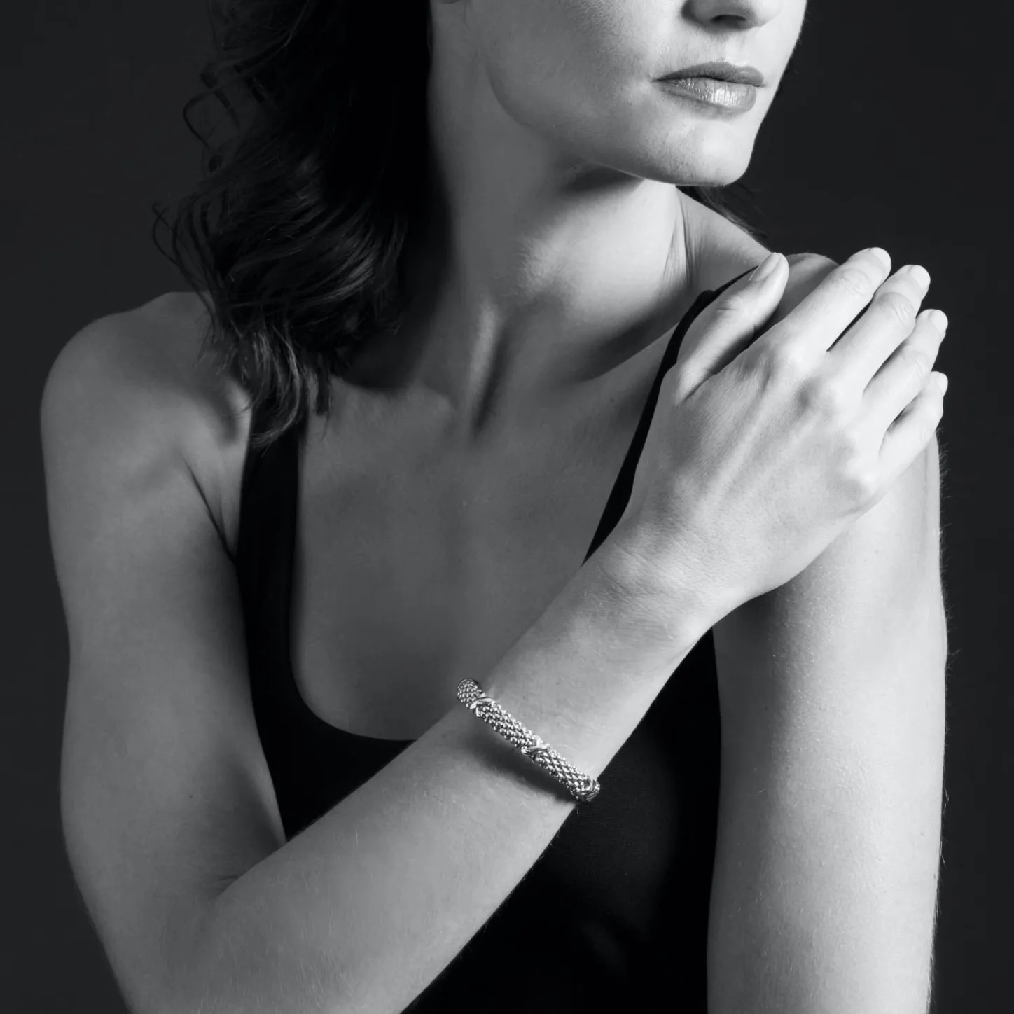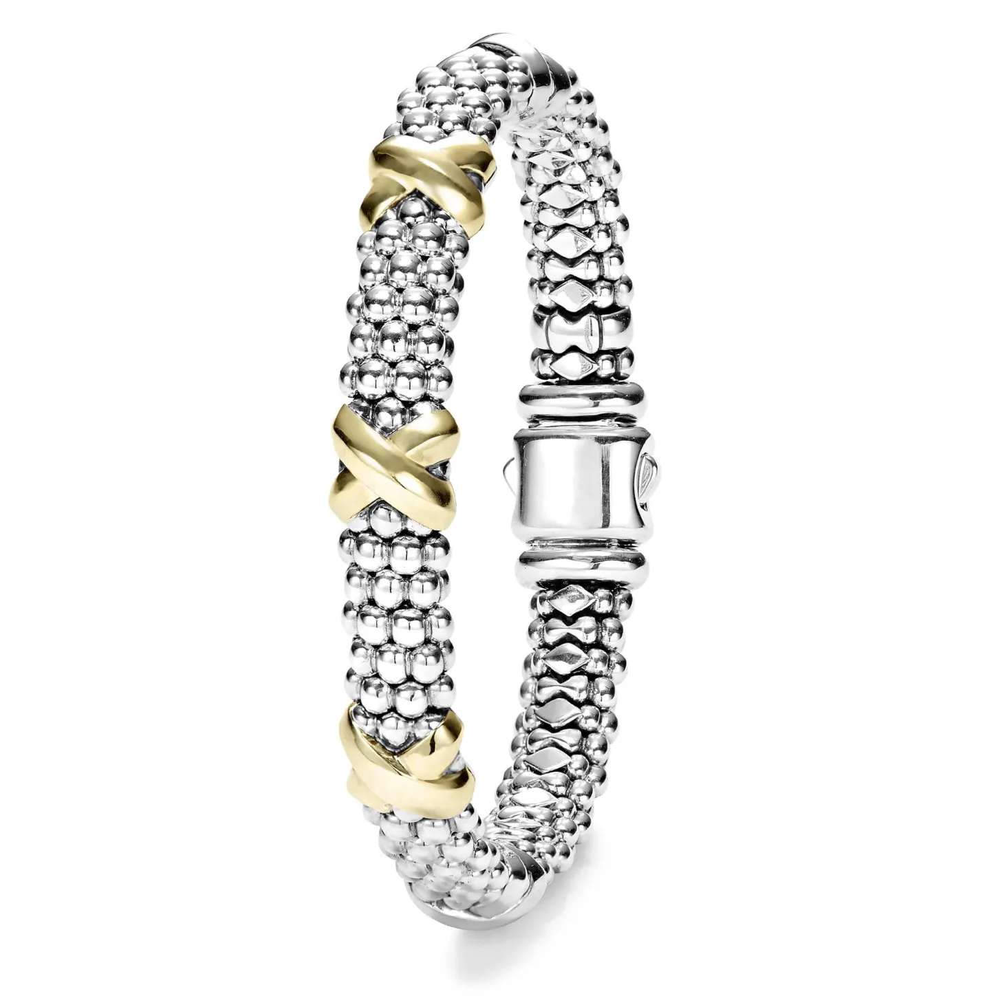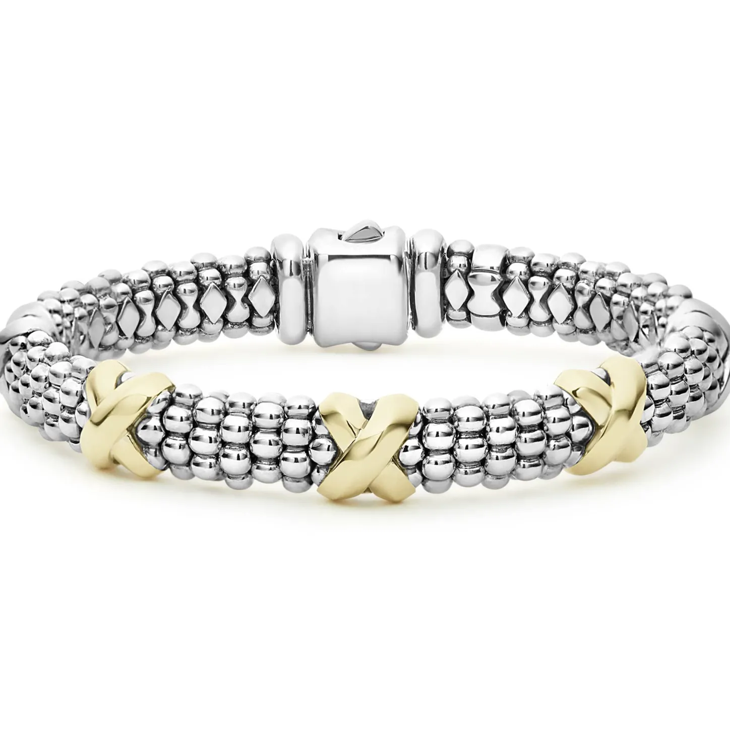 Three 18K Gold And Two Sterling Silver X Stations Highlight Caviar Beading On This Signature Bracelet.
