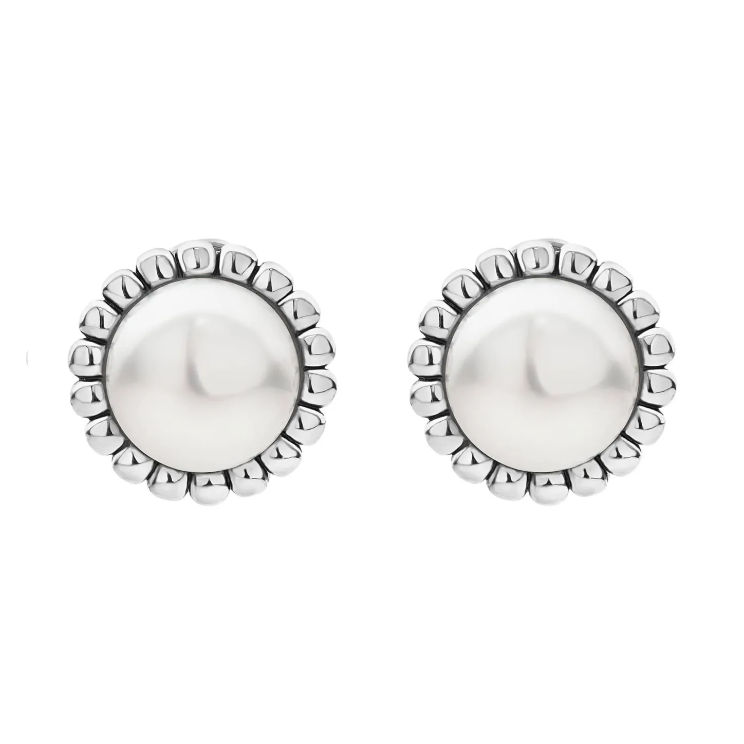 Classic Cultured Freshwater Pearl Earrings Framed By Flutes Of Sterling Silver. Just The Right Touch For Every Day.