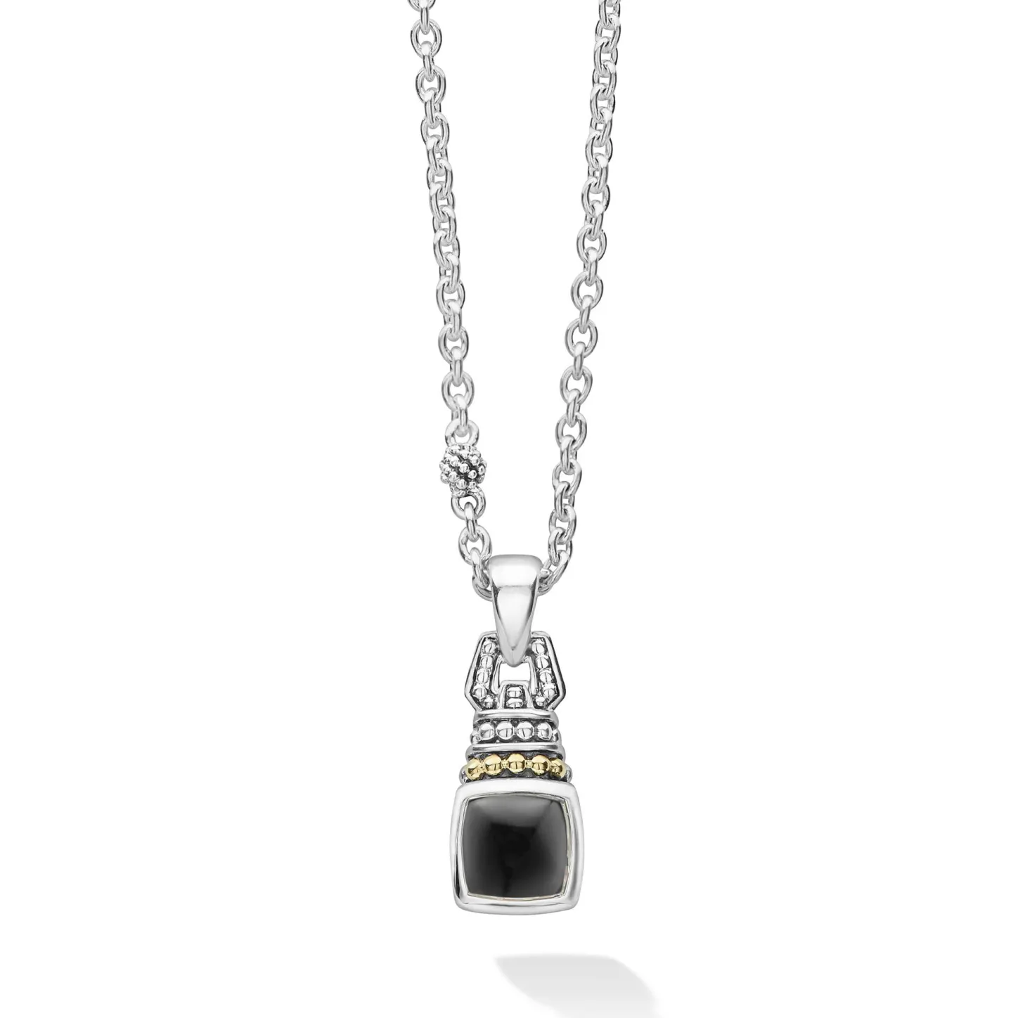 Onyx Gemstone Drop Pendant Necklace With 18K Gold And Sterling Caviar Beading. Necklace Adjusts From 16 To 18 Inches For Added Versatility.