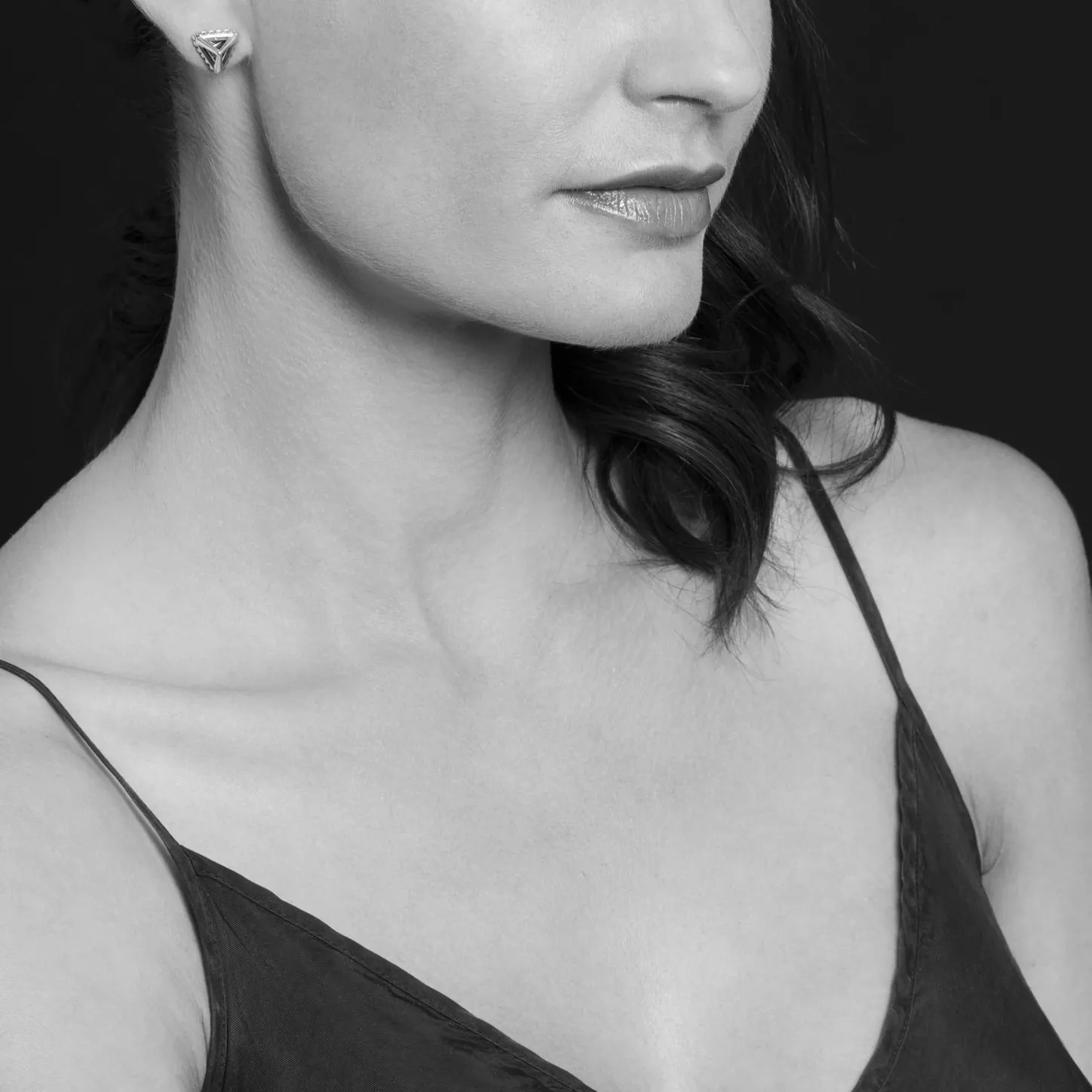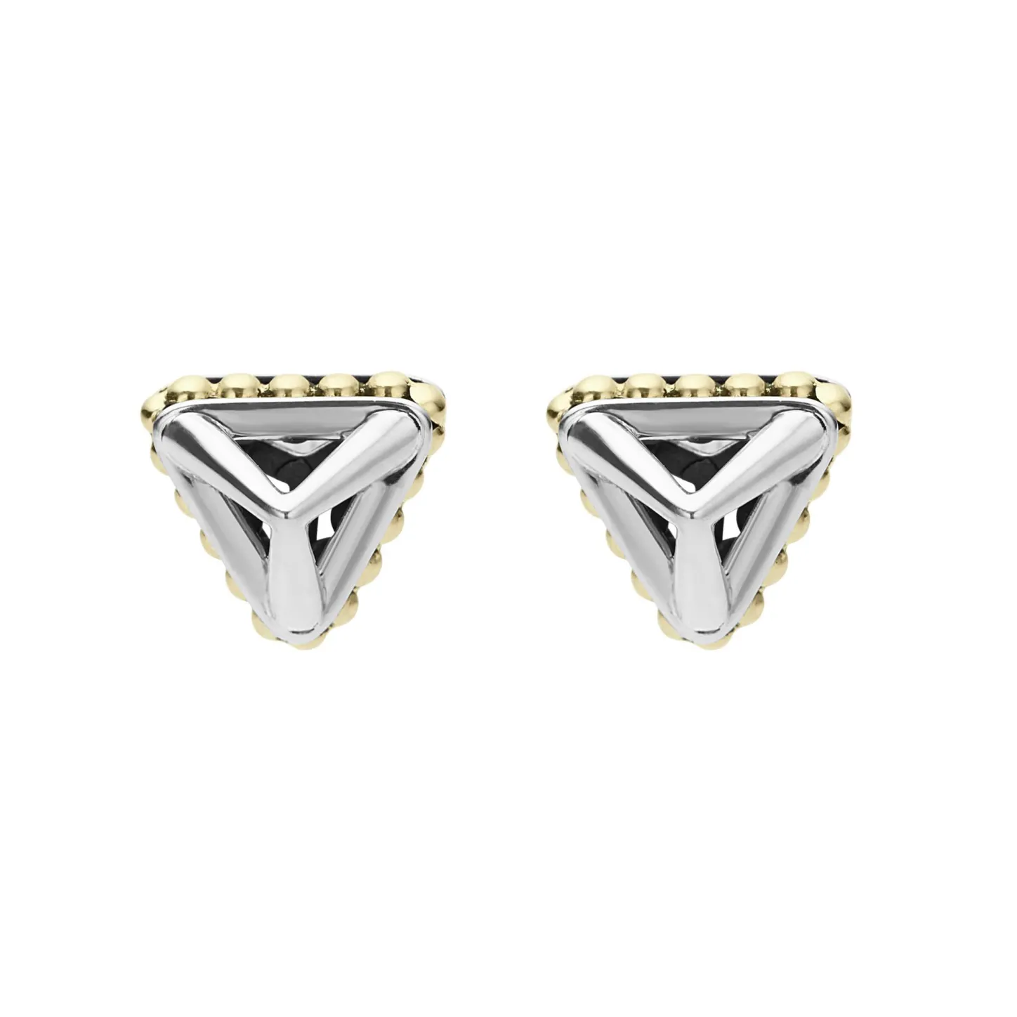 Sterling Silver Open Pyramid Stud Earrings With 18K Gold Caviar Beaded Accents.