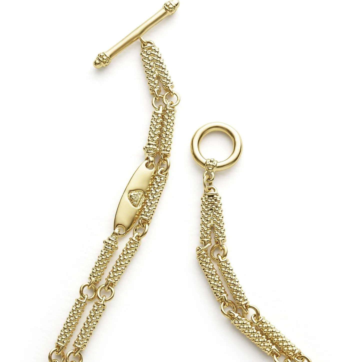 18K Gold Superfine Caviar Beading And Diamonds Form This Double Link Bracelet. Lagos Diamonds Are The Highest Quality Natural Stones.