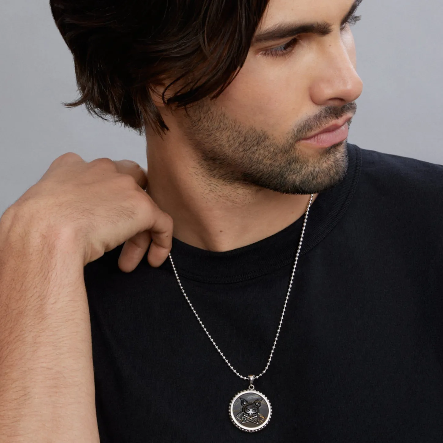 Tiger Iron Gemstone Surrounded By Sterling Silver Caviar Beading Form This Krunch Emblem Amulet.