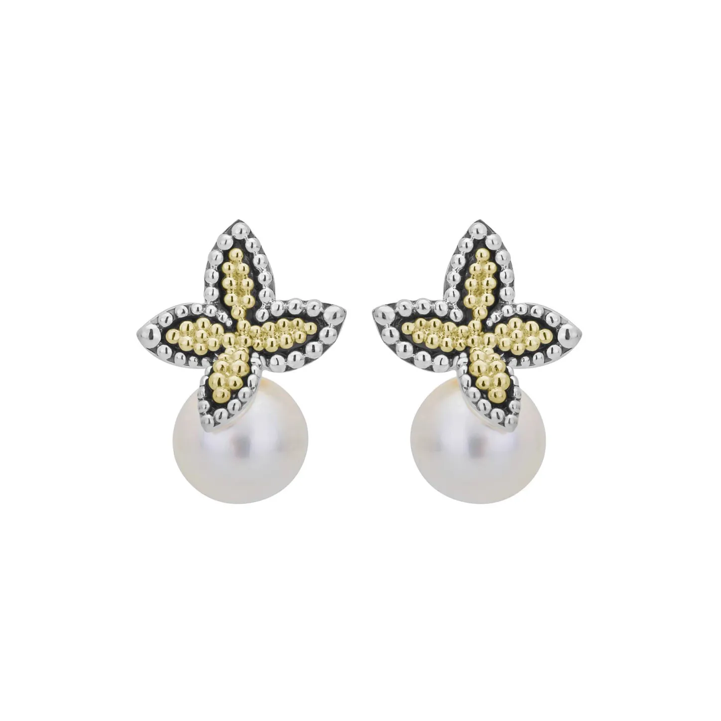 Signature Sterling Silver And 18K Gold Beading Form These Pearl Earrings.