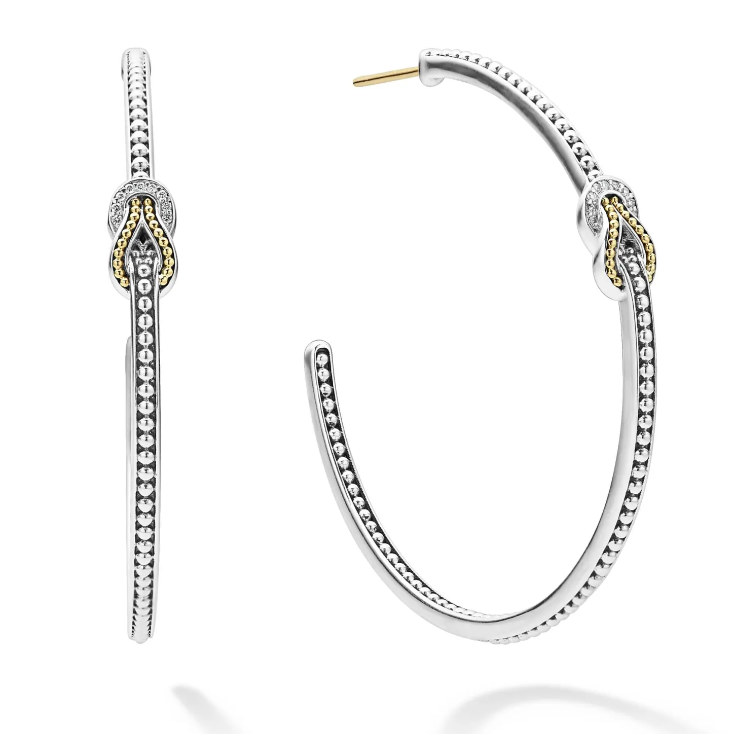 Diamonds And 18K Gold Woven In A Knot Motif Form These Unique Newport Caviar Beaded Hoop Earrings. Lagos Diamonds Are The Highest Quality Natural Stones.