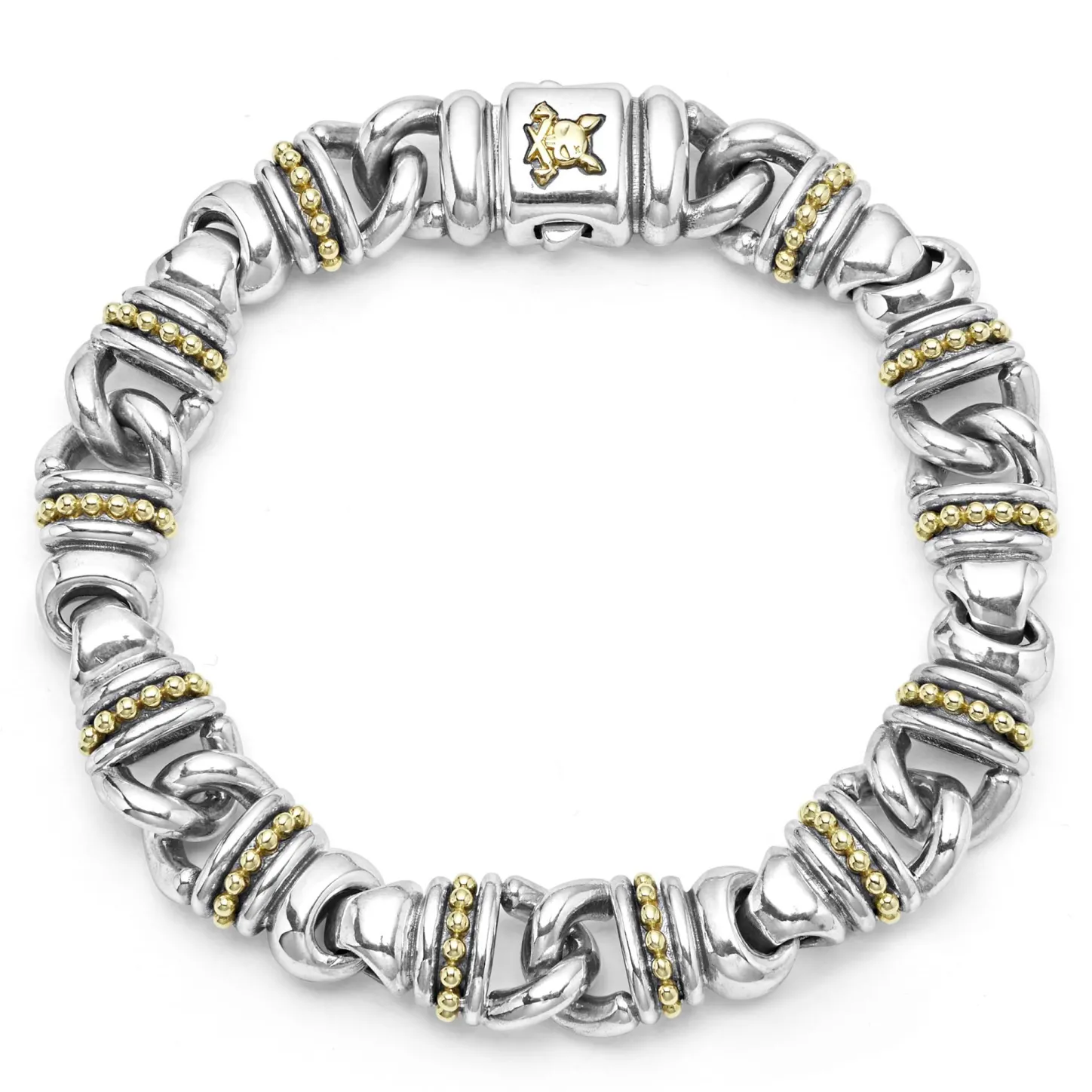 18K Gold And Sterling Silver Forms This Curb Link Bracelet.