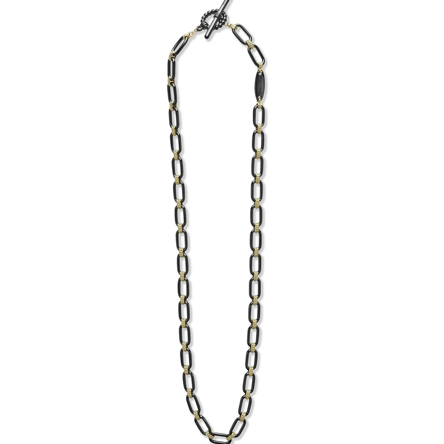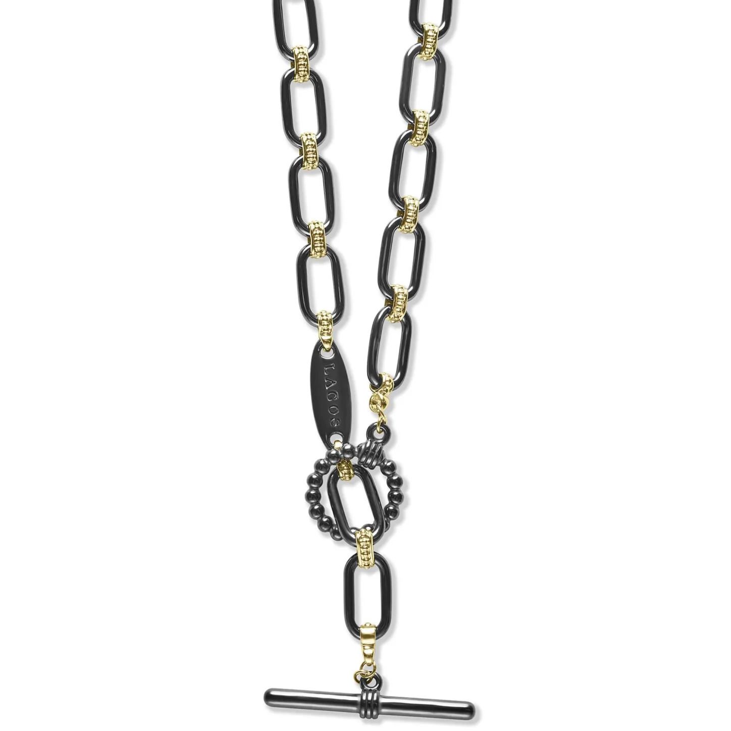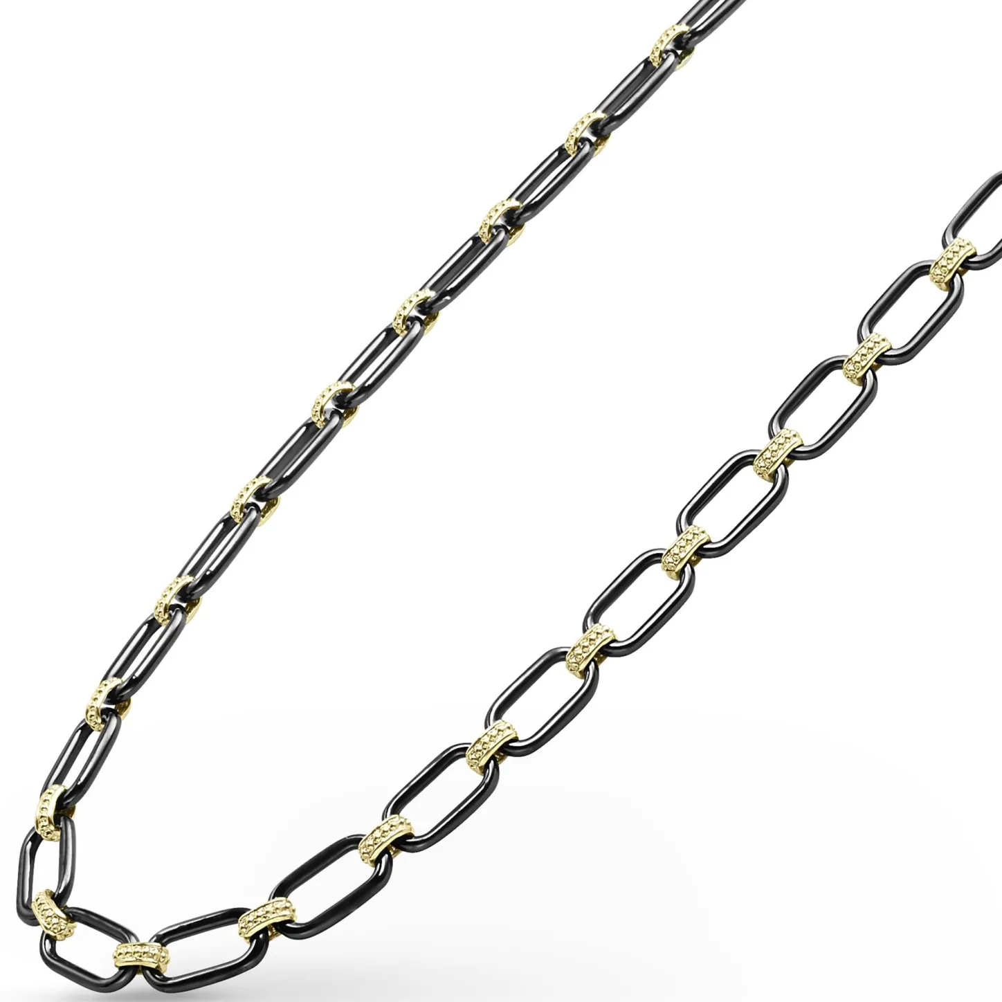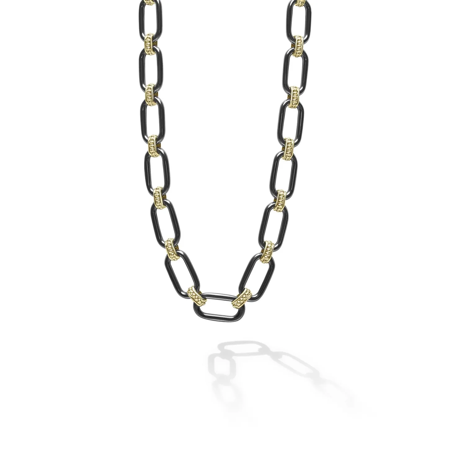 18K Gold Variations Of Caviar Beading & Black Ceramic Form This Bold Link Necklace. Necklace Adjusts From 16 To 18 Inches.