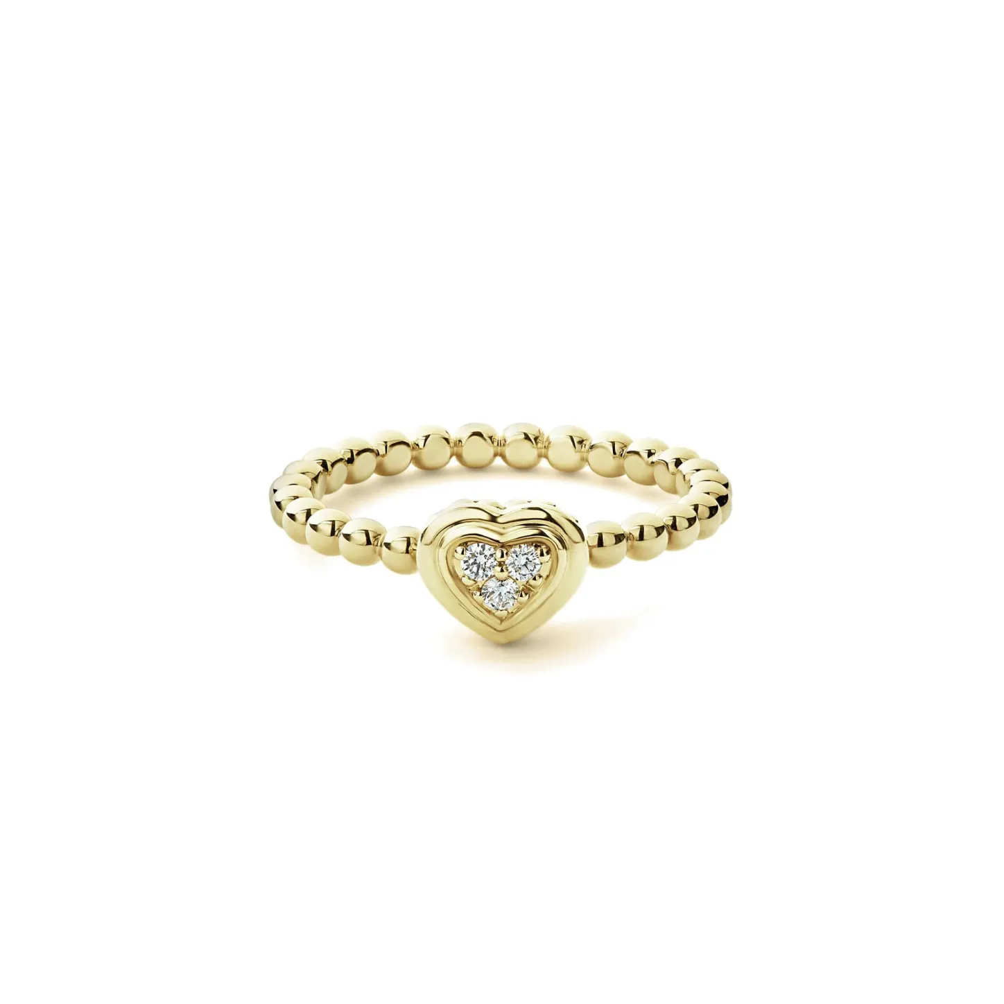 A Diamond Surrounded By A Heart Forms This 18K Gold Ring Finished On A Band Of Caviar Beading. Lagos Diamonds Are The Highest Quality Natural Stones.
