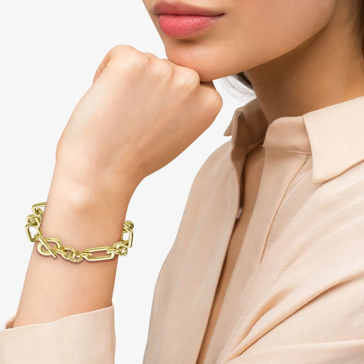 18K Gold Variations Of Caviar Beading & Fluting Elements Form This Bold Link Bracelet.
