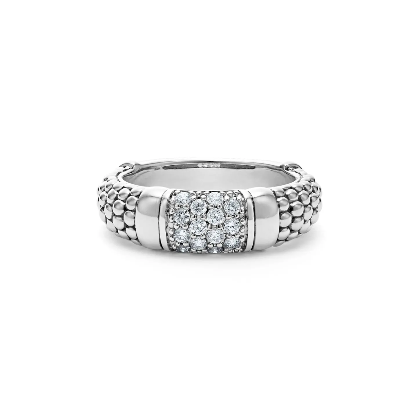 Pavé Diamonds And Sterling Silver Caviar Beading Form This Unique Band Ring. Lagos Diamonds Are The Highest Quality Natural Stones.
