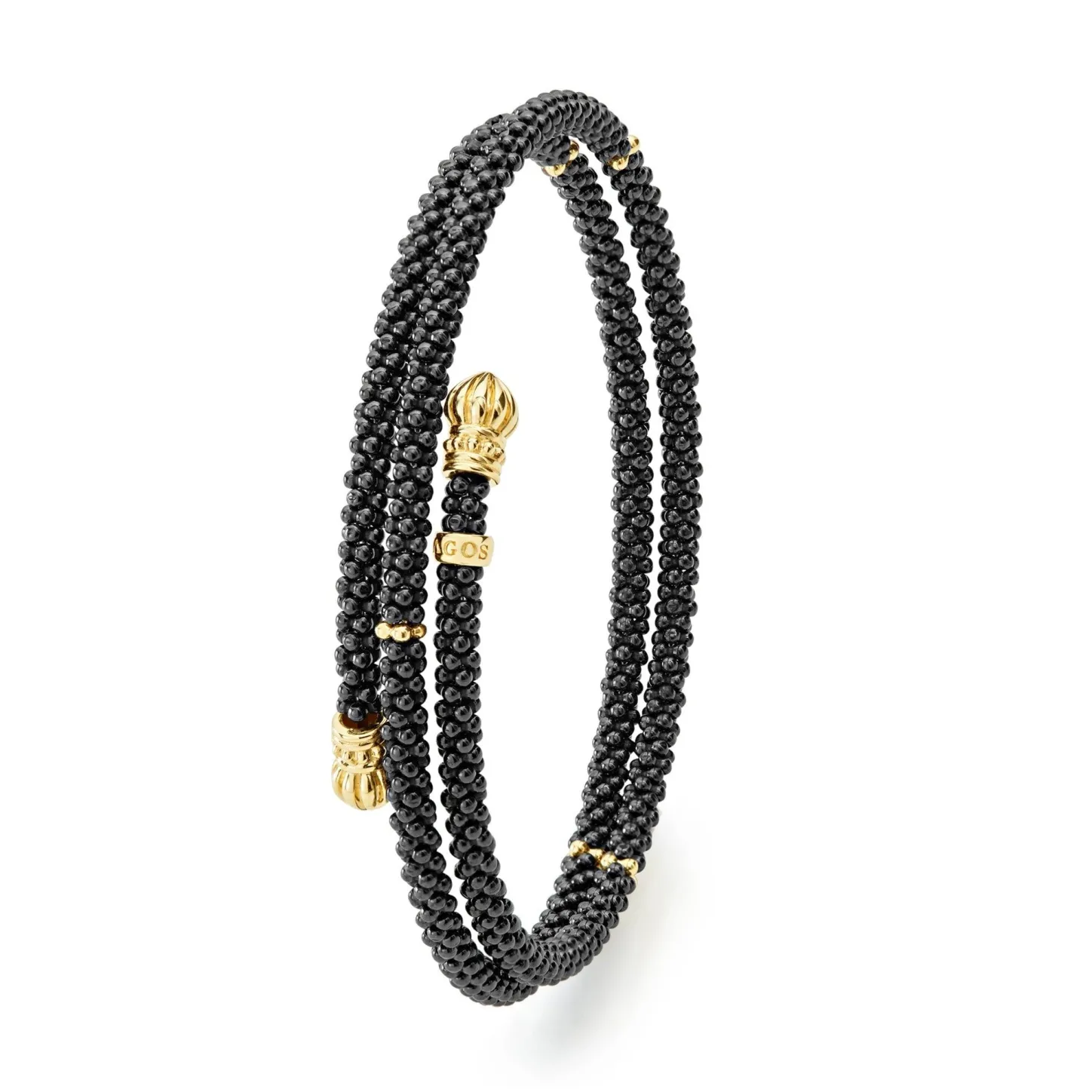 Classic Black Ceramic Caviar Beading Finished With 18K Gold Endcaps Form This Coil Bracelet.