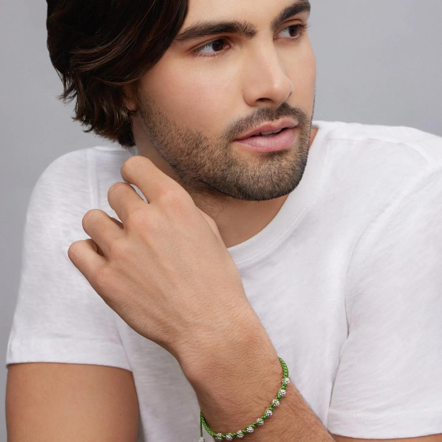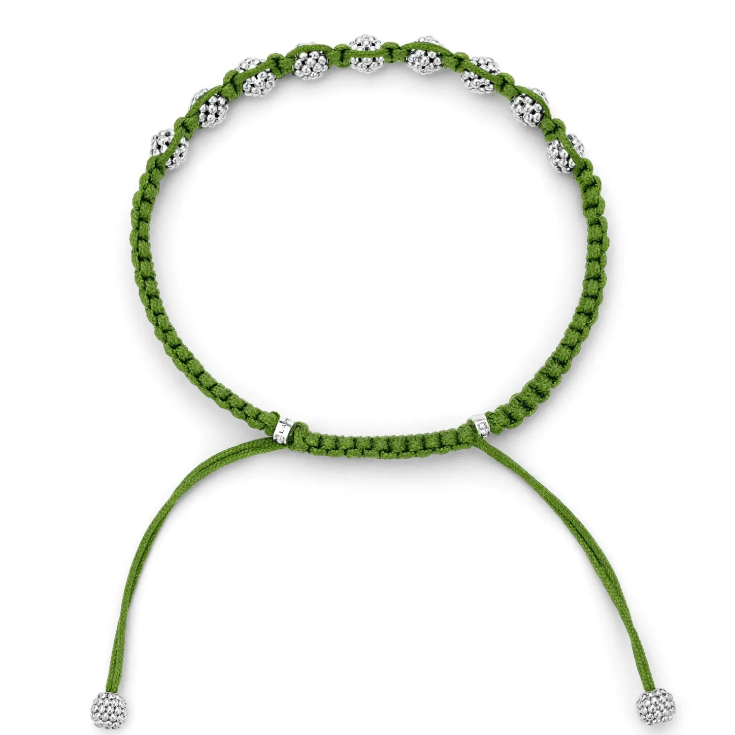 Green Braided Nylon With Sterling Silver Caviar Beading Forms This Versatile Macrame Bracelet.