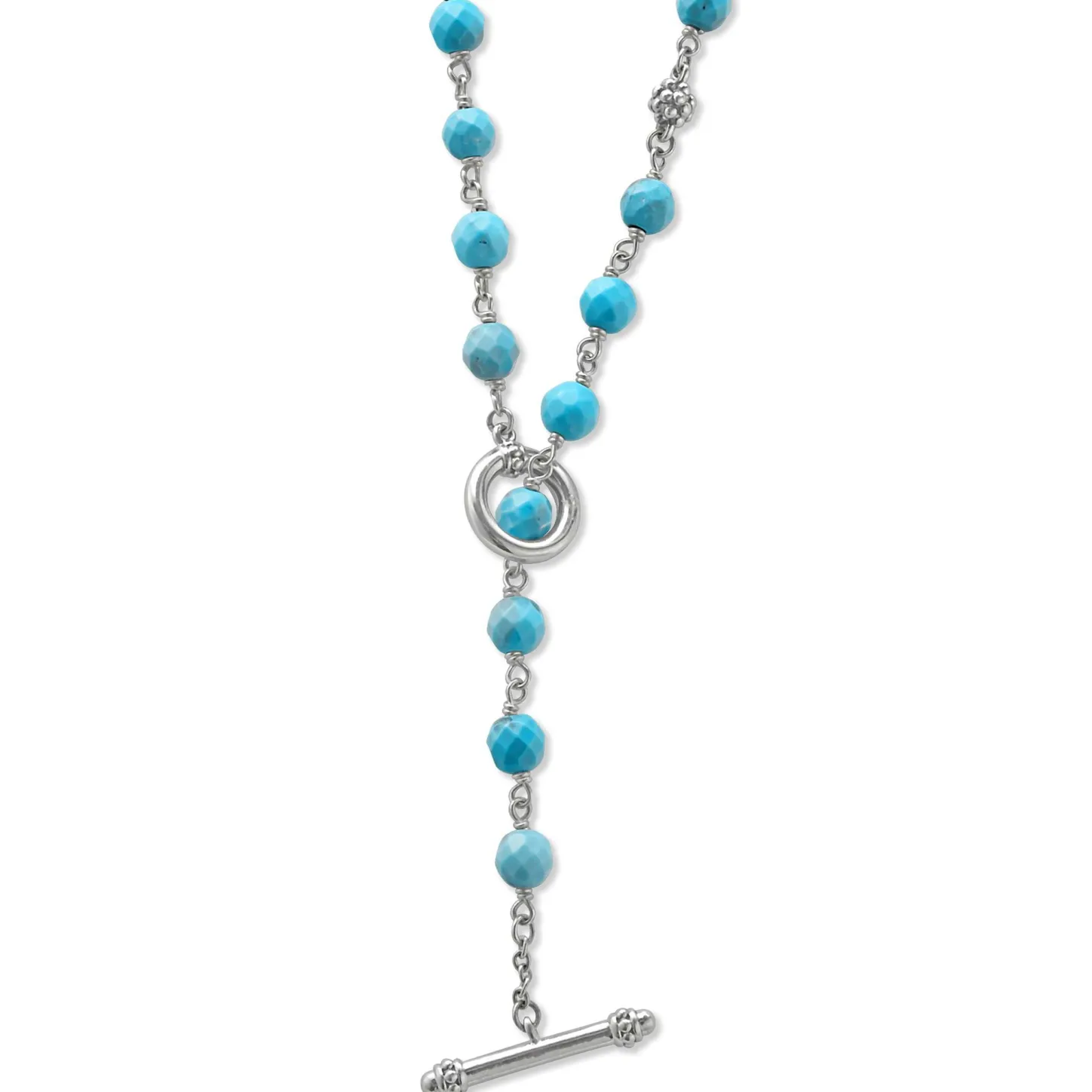 Turquoise And Sterling Silver Caviar Beaded Necklace Finished With Signature Lobster Clasp.