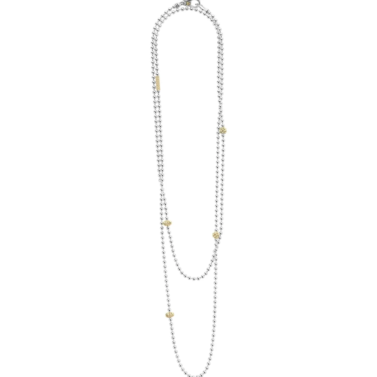 Sterling Silver Necklace With 18K Gold Caviar Beading And Fluted Accents. Ideal To Style With Various Necklaces For A Unique Look.