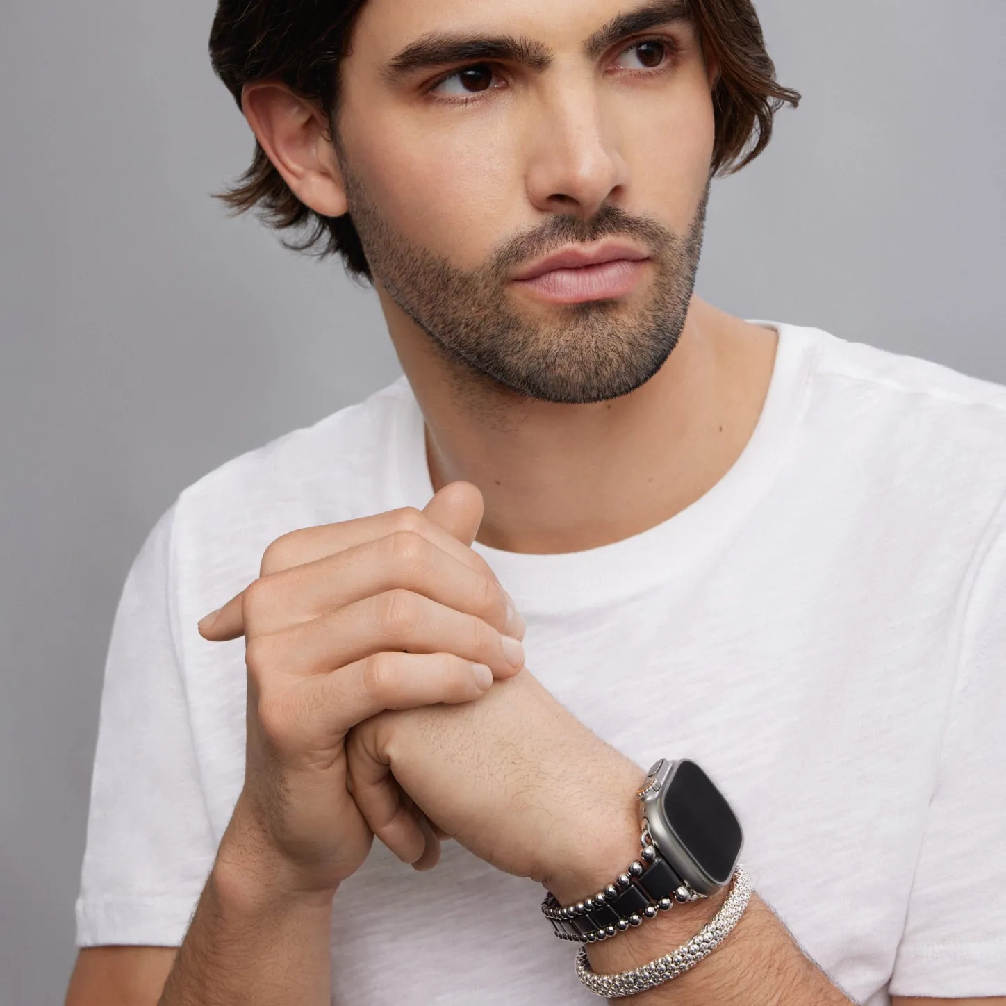 A Lagos Exclusive. One Matte Black Ceramic Smart Caviar Watch Band And One Sterling Silver Skull Caviar Beaded Bracelet. Set Includes Size Medium.