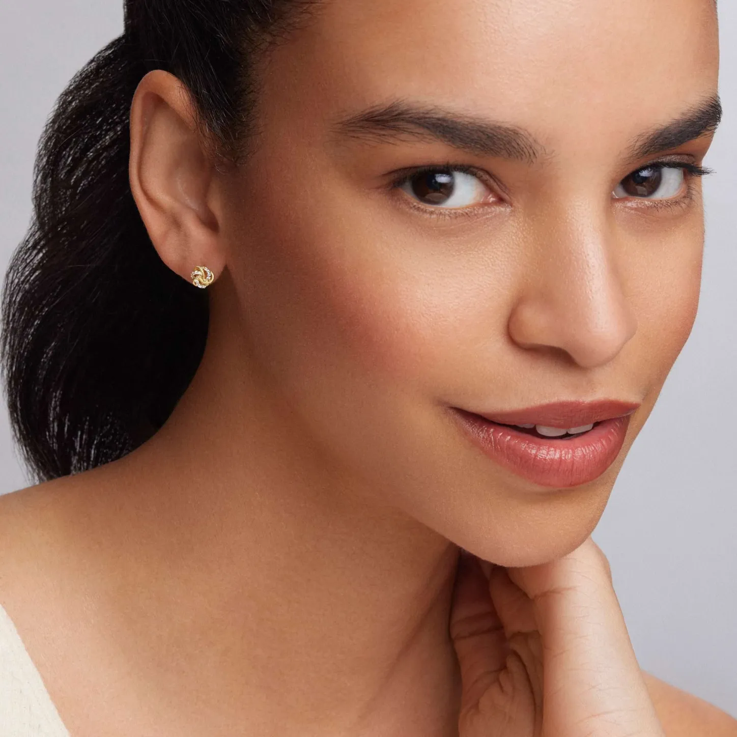 Love Knot Stud Earrings Formed Of Diamonds And 18K Gold Caviar Beaded Bands. Lagos Diamonds Are The Highest Quality Natural Stones.