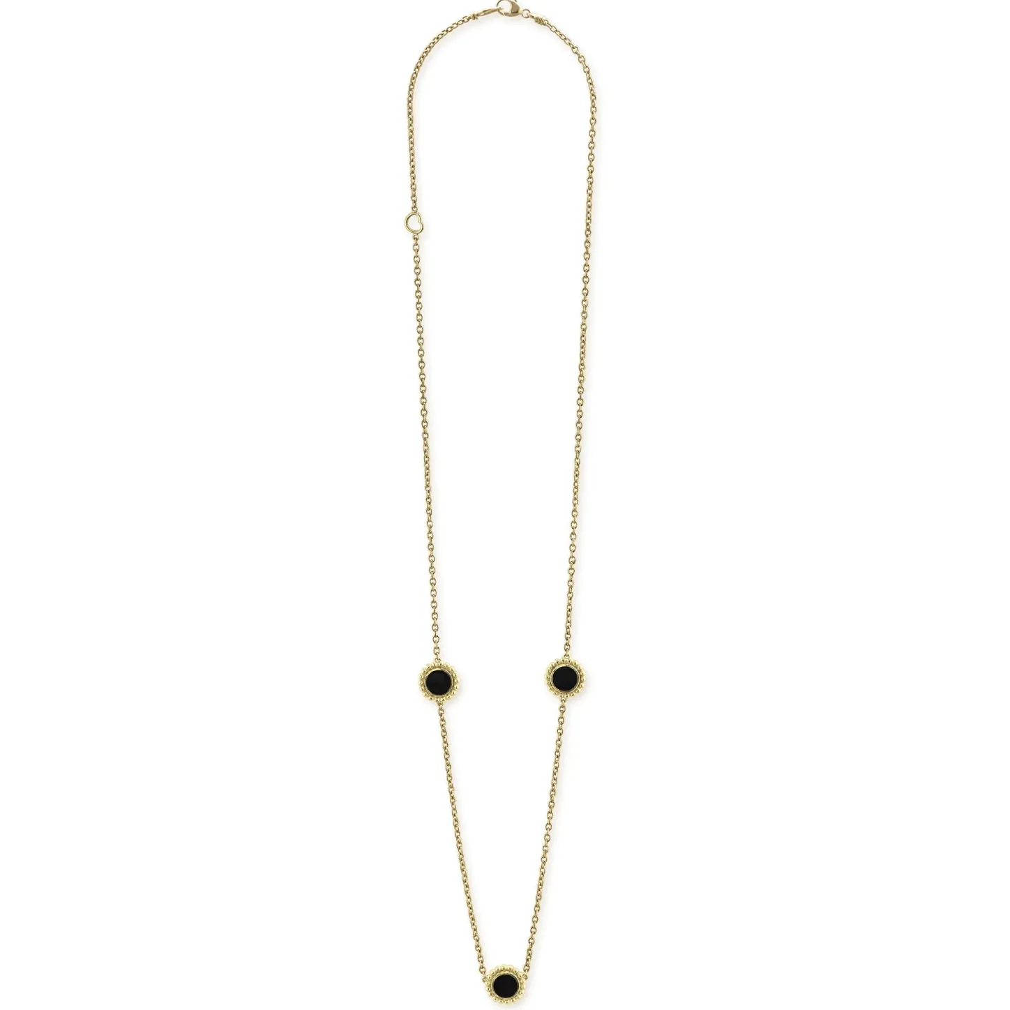 Three Round Onyx Stations Set And Surrounded By 18K Gold Caviar Beading On This Necklace.